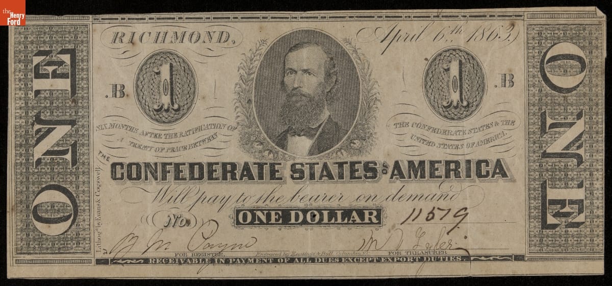 Confederate Currency, Confederate States of America, One Dollar, 1863