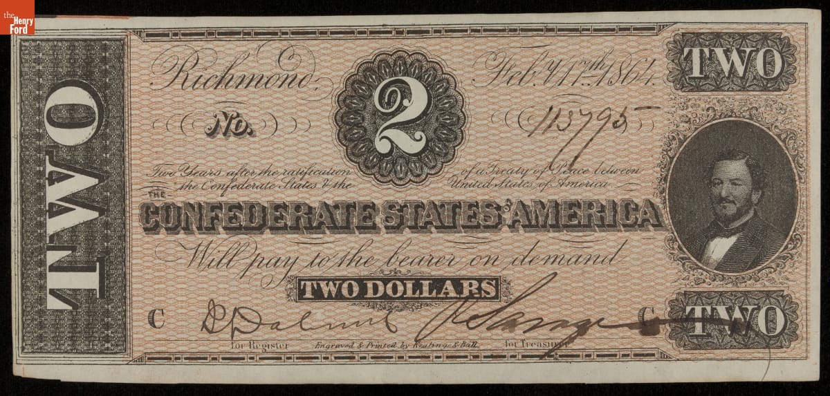 Confederate Currency, Confederate States of America, Two Dollars, 1864