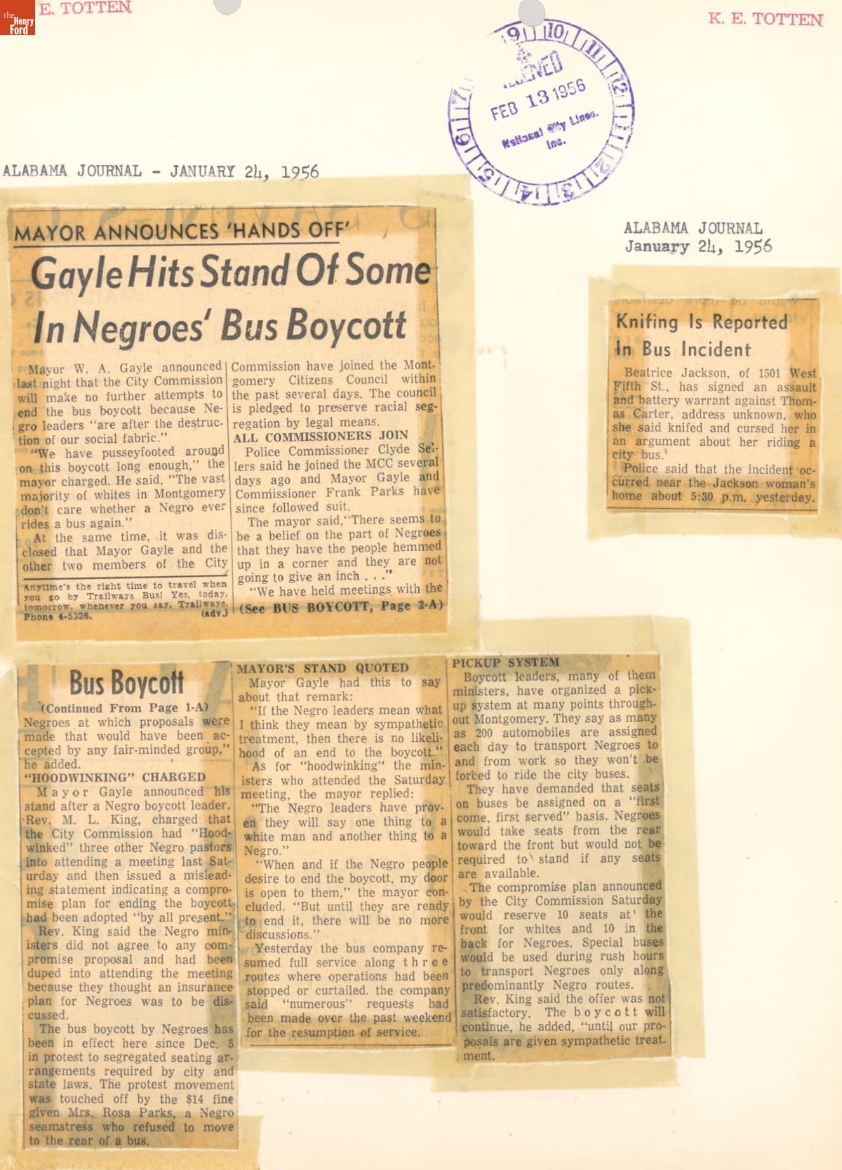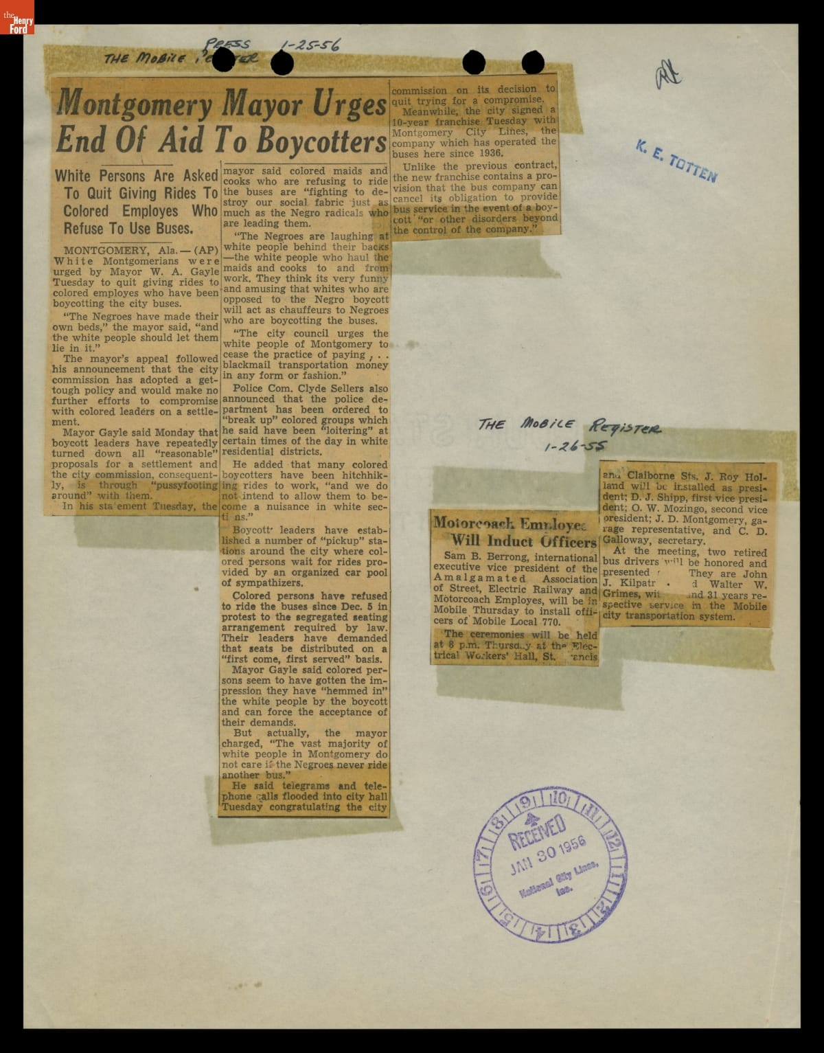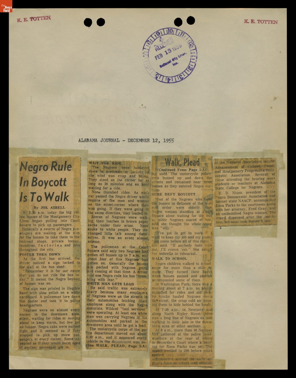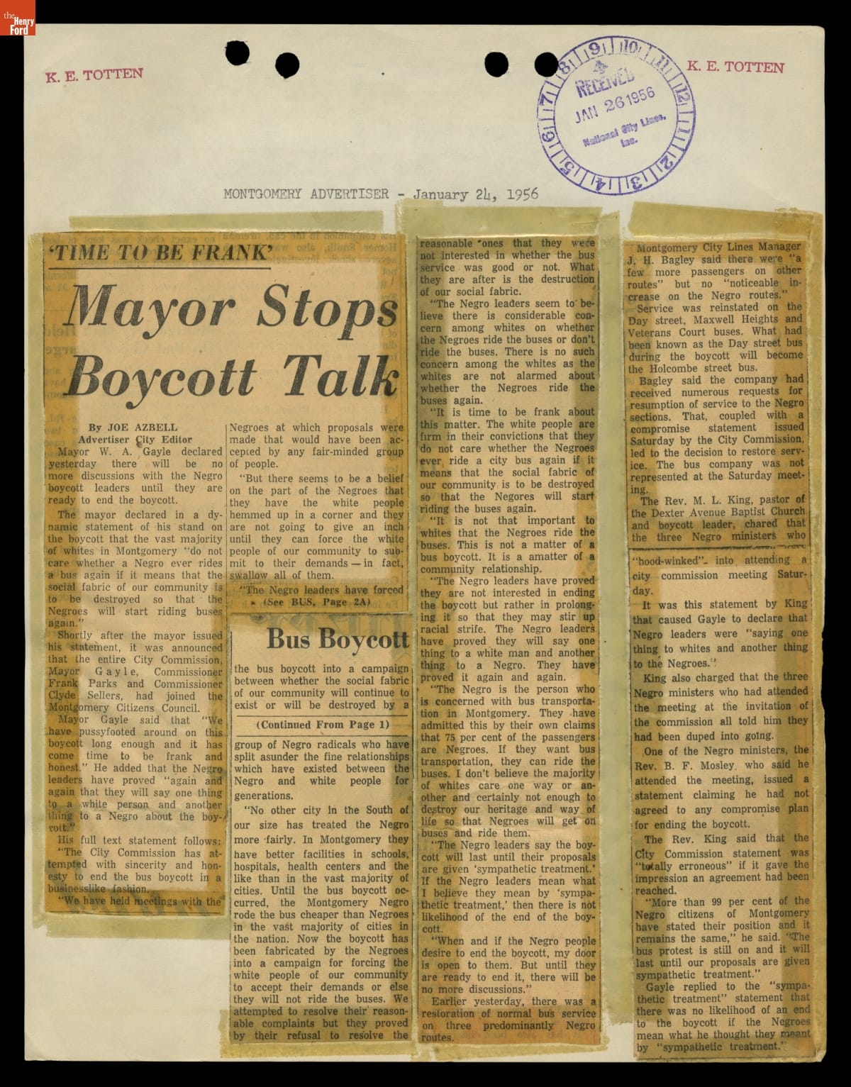 Montgomery Bus Boycott Scrapbook, November 1955 - April 1957 (Part 1 of 6)