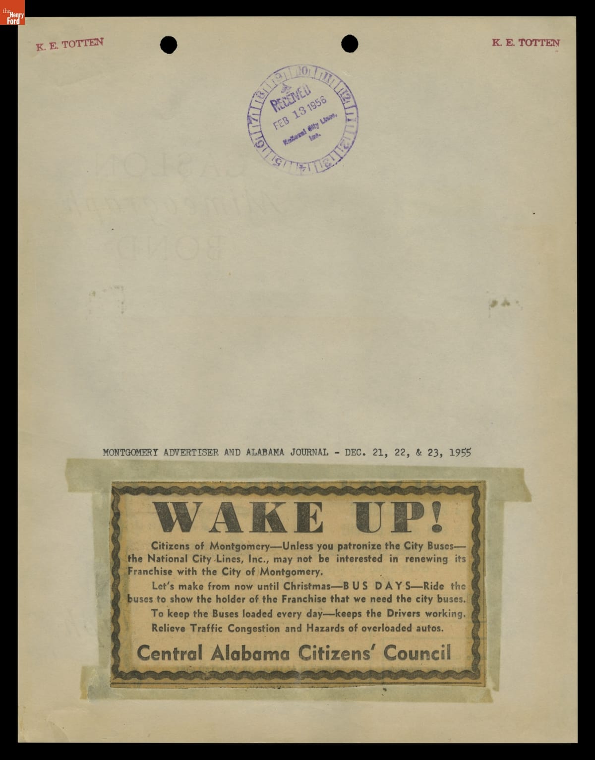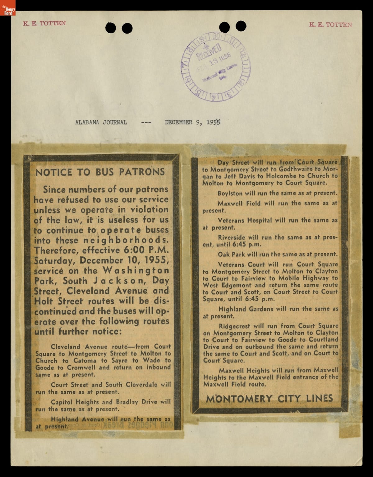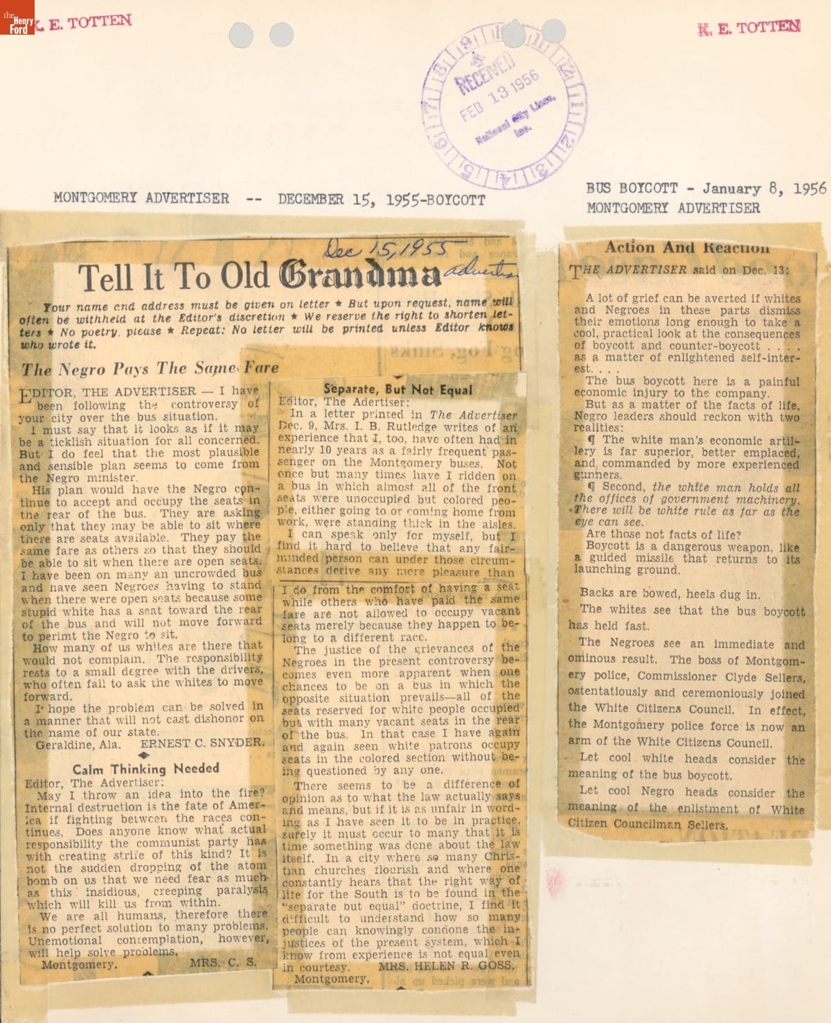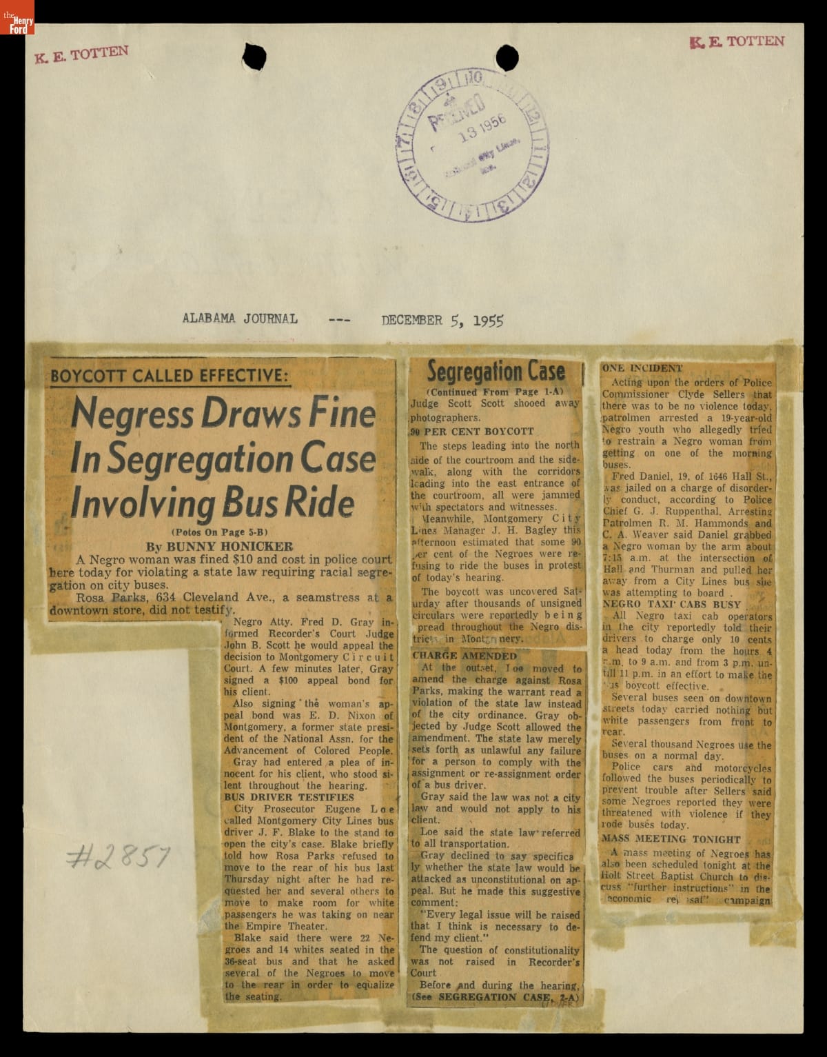 Montgomery Bus Boycott Scrapbook, November 1955 - April 1957 (Part 1 of 6)