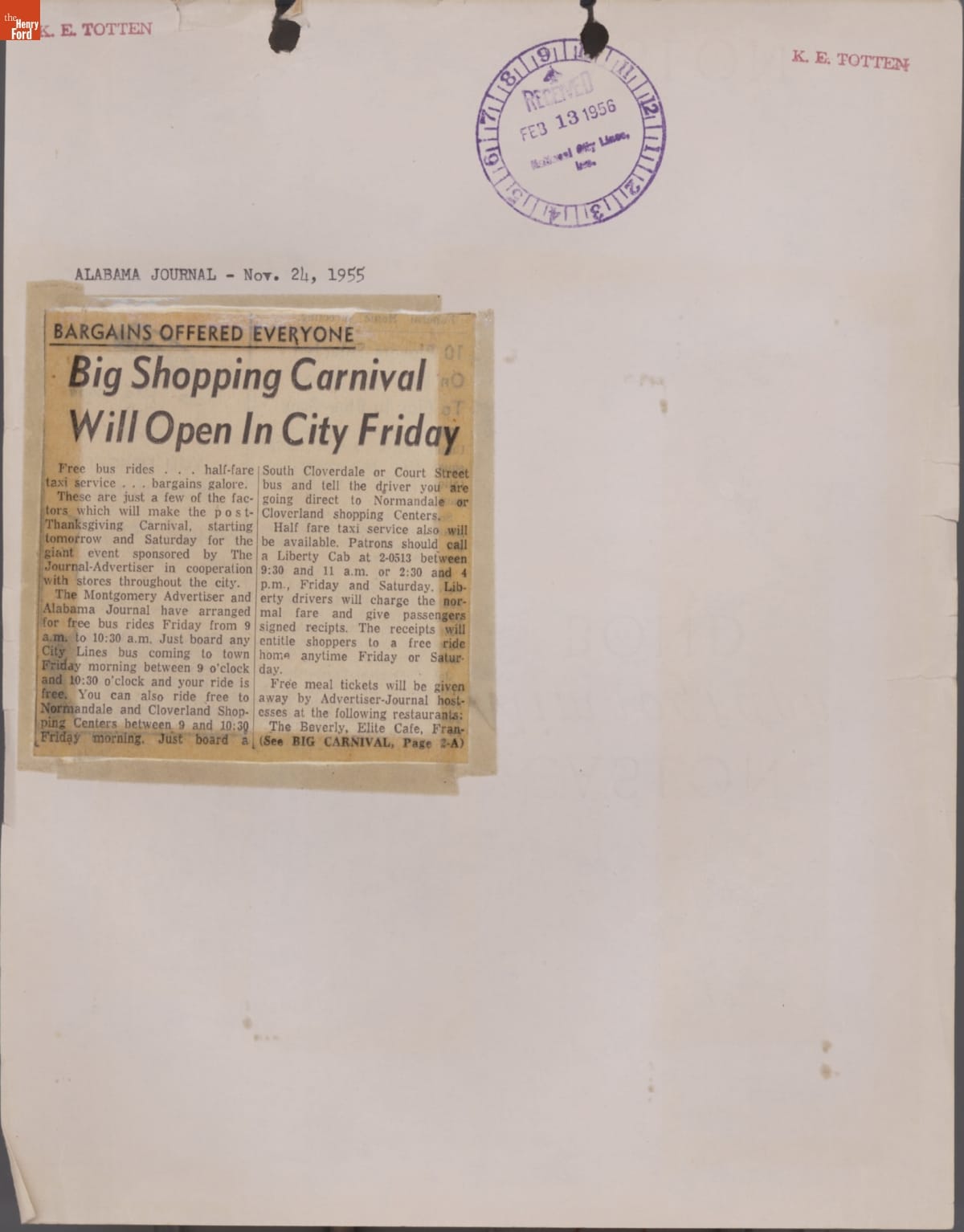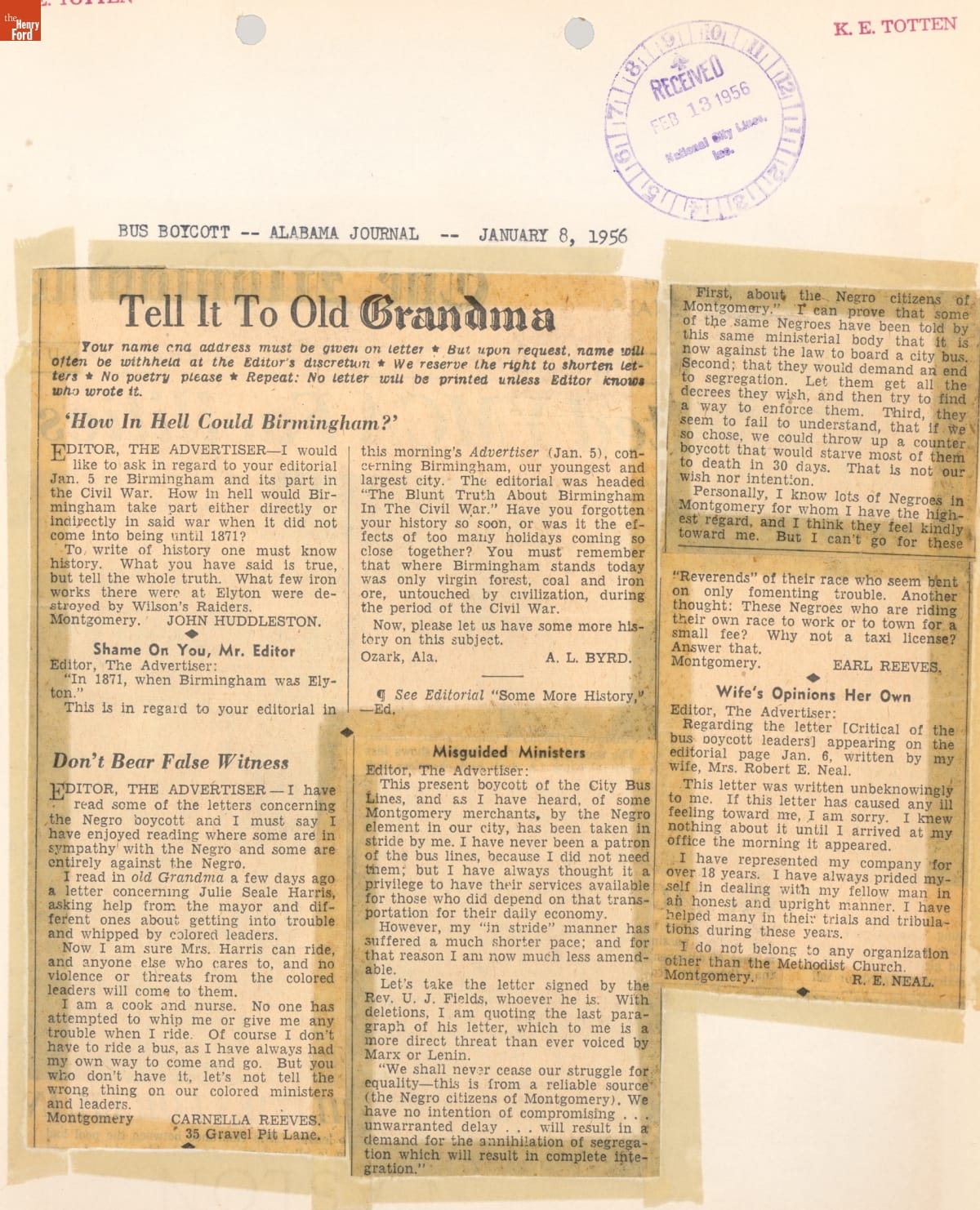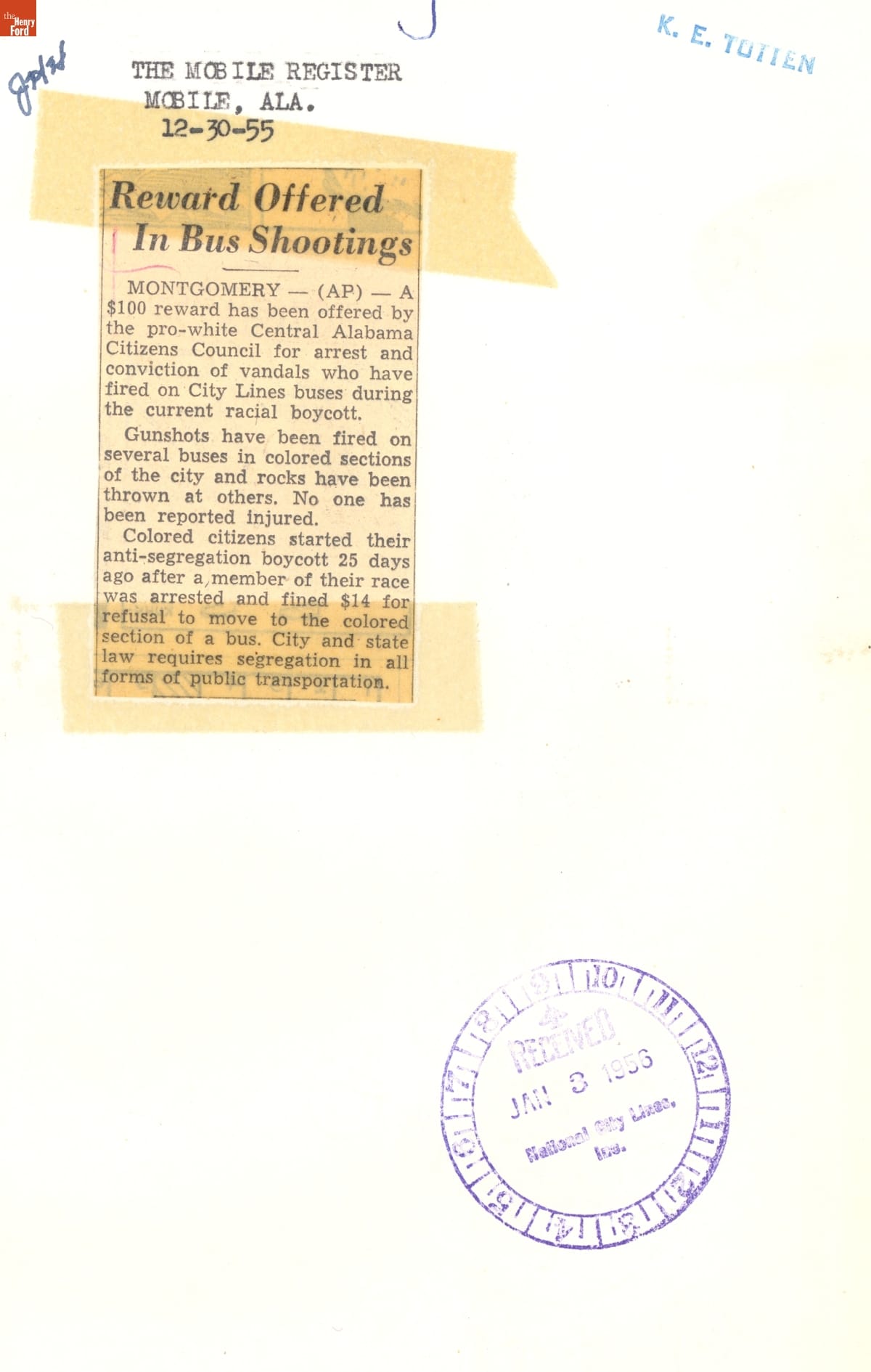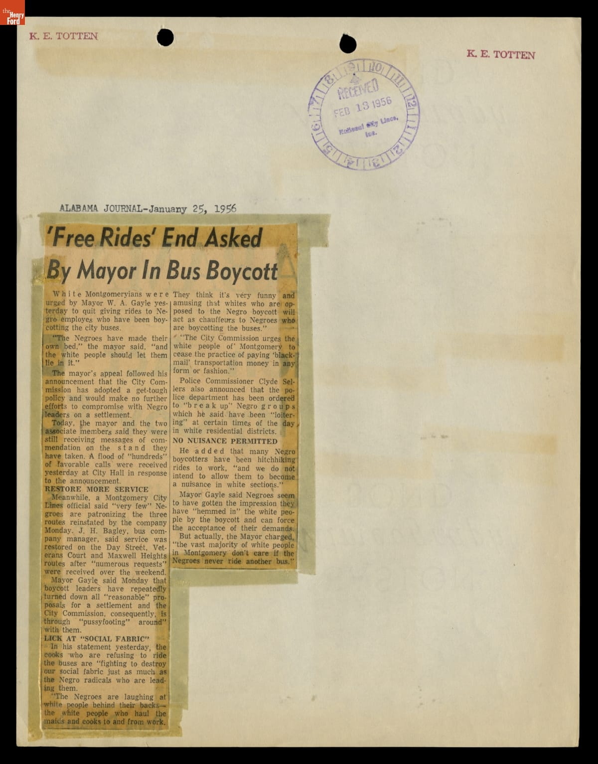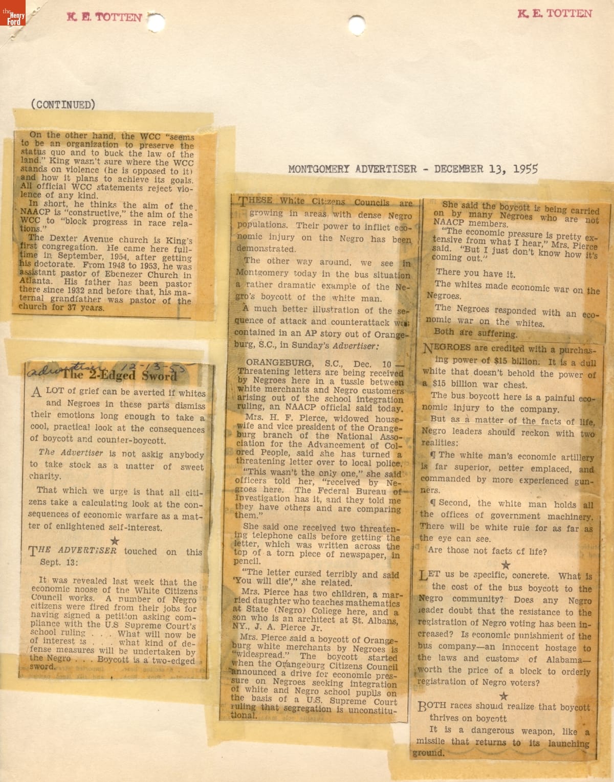 Montgomery Bus Boycott Scrapbook, November 1955 - April 1957 (Part 1 of 6)