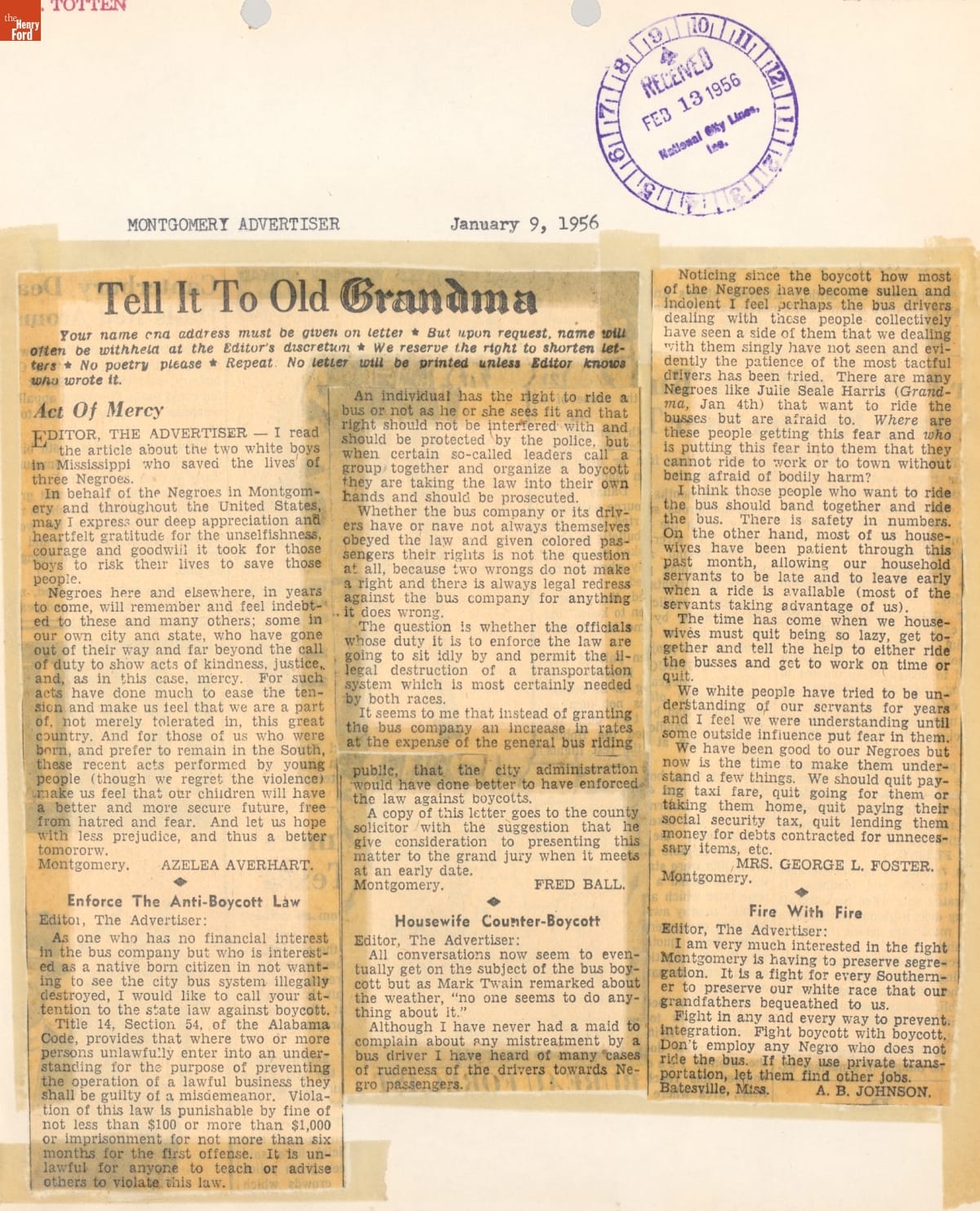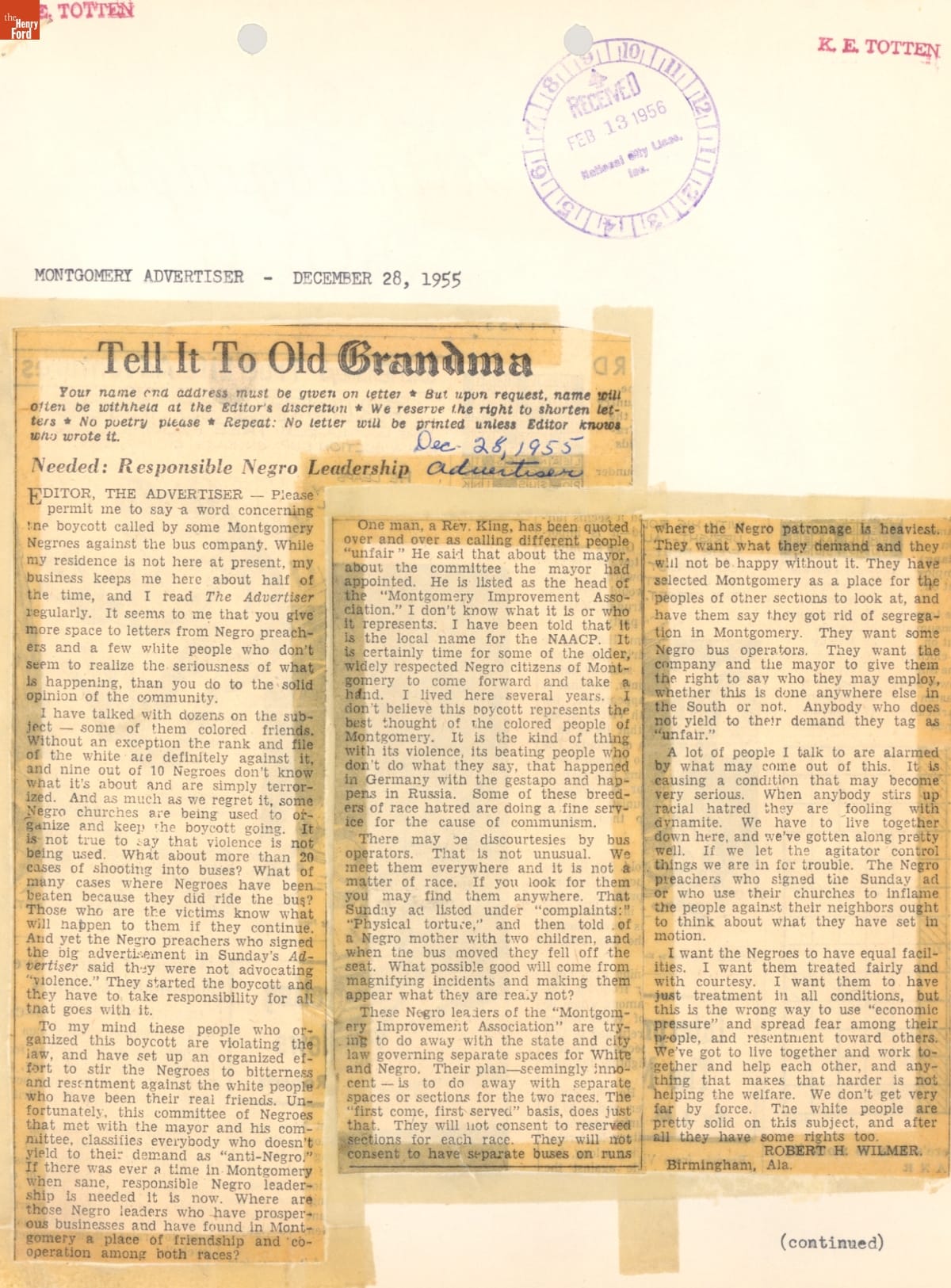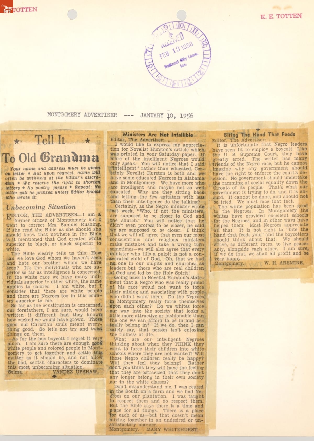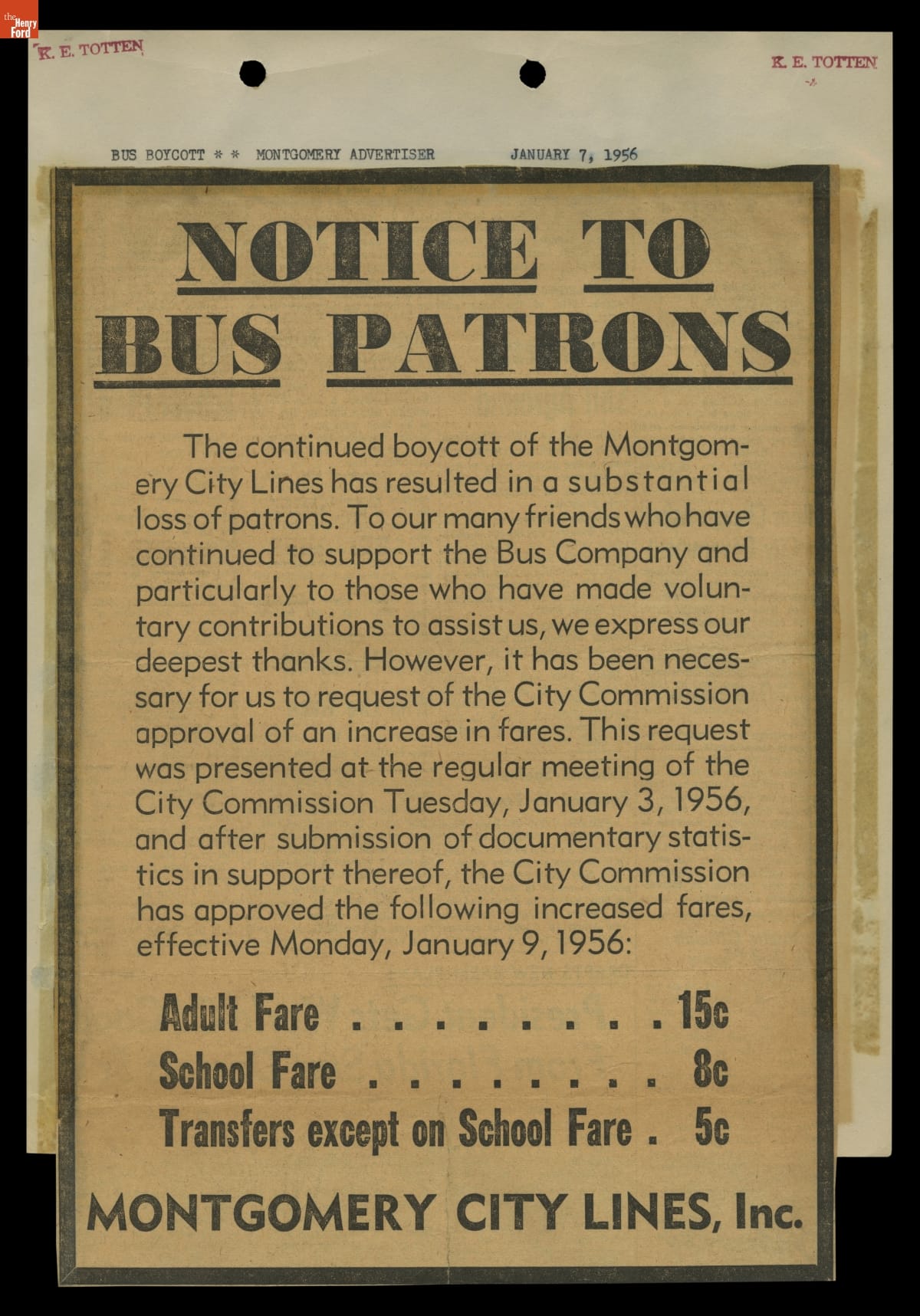 Montgomery Bus Boycott Scrapbook, November 1955 - April 1957 (Part 1 of 6)