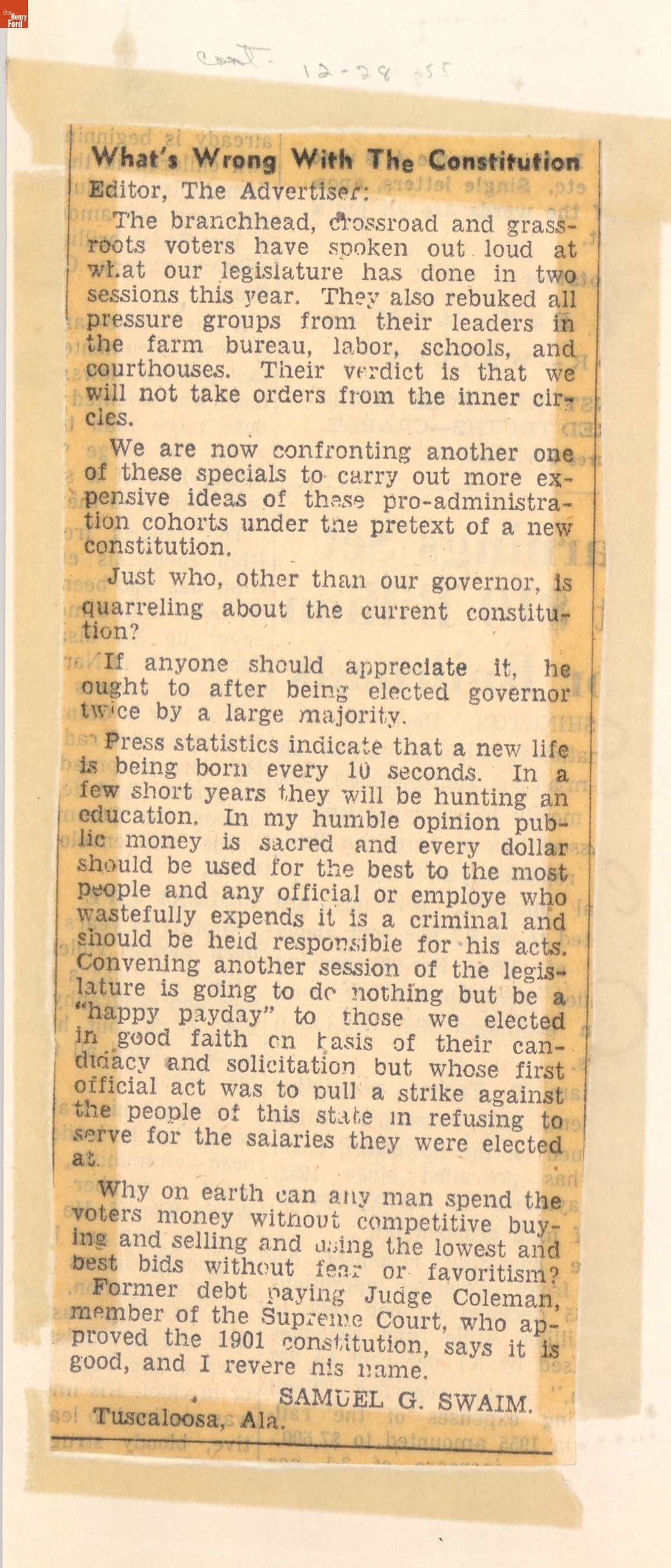 The original scrapbook was compiled by Charles H. Cummings of Montgomery, Alabama.