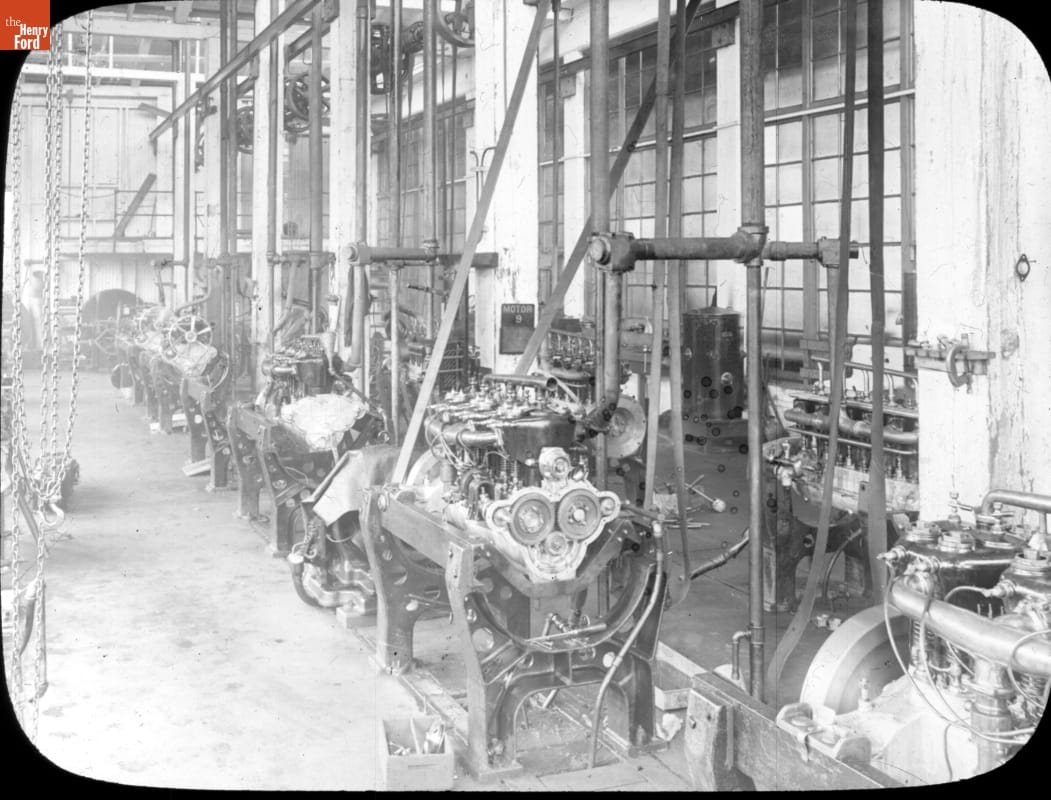In 1908, six automobiles raced around the globe from New York City to Paris, France. This contest took 169 days, covered 22,000 miles and spanned three continents. The American team, the eventual winner of the race, drove a Thomas Flyer. This lantern slide shows the Buffalo, New York factory were the automobile was made.