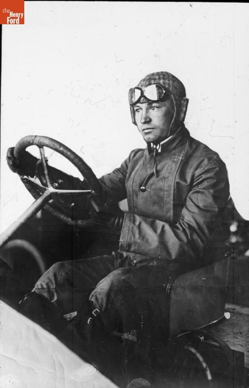 E. Linn Mathewson at the Wheel of the Thomas Flyer, New York to Paris Race, 1908