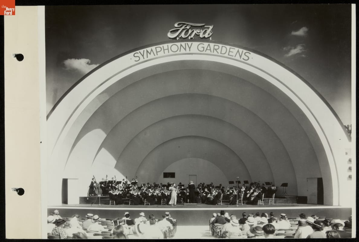 Ford Motor Company poured resources into the largest, most talked-about exhibition at Chicago's Century of Progress Exposition in 1934. The installation included Ford Symphony Gardens, an outdoor bandshell where fairgoers could relax and enjoy free performances. These concerts and plays broadened Ford's corporate presence at the fair and provided bonus advertising.