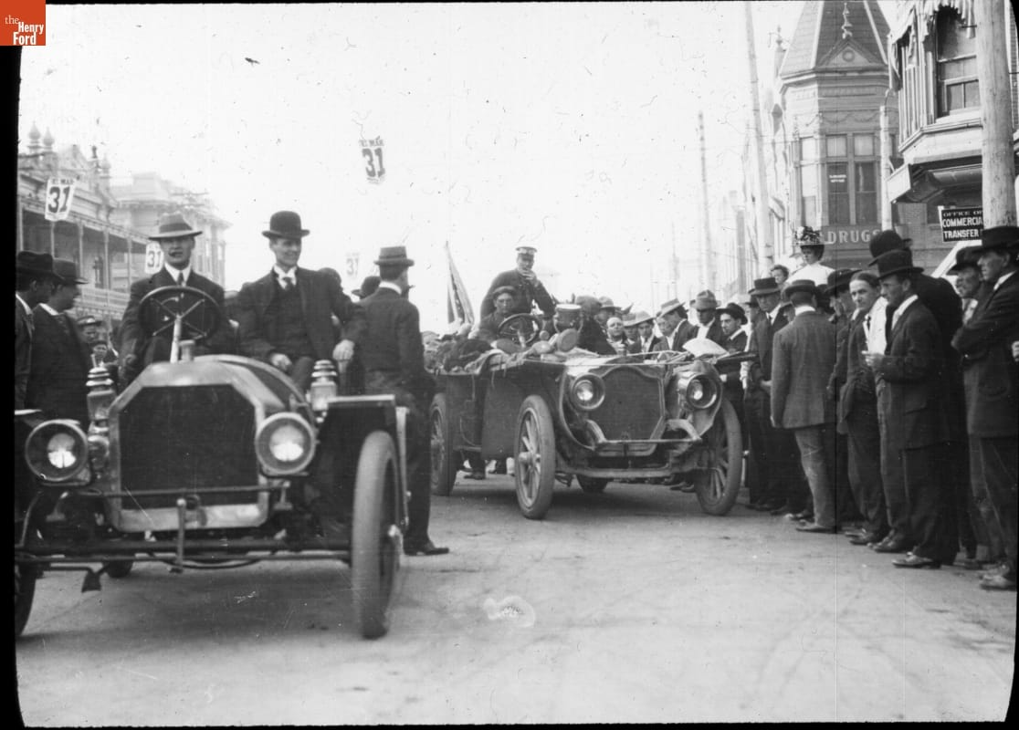 In 1908, six automobiles raced around the globe from New York City to Paris, France. The contest took 169 days, covered 22,000 miles and spanned three continents. By mid-March, the American team, driving a Thomas Flyer, had entered California ahead of the remaining three vehicles. Their goal was San Francisco. From there they would transport the car to Alaska and continue the race.