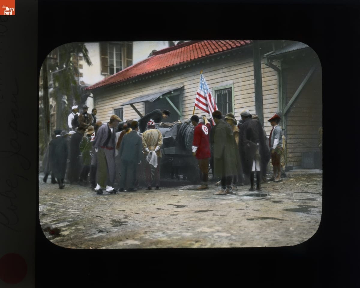 The 1908 New York to Paris race was a 22,000-mile automobile endurance contest. After crossing the continental United States, teams shipped their vehicles to Asia. The Americans, driving a Thomas Flyer, disembarked in Japan in early May. As the Flyer and crew trekked carefully over the narrow Japanese roads, they encountered many inquisitive, courteous and helpful people.