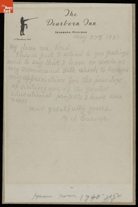Letter from George Washington Carver to Henry Ford, May 27, 1937