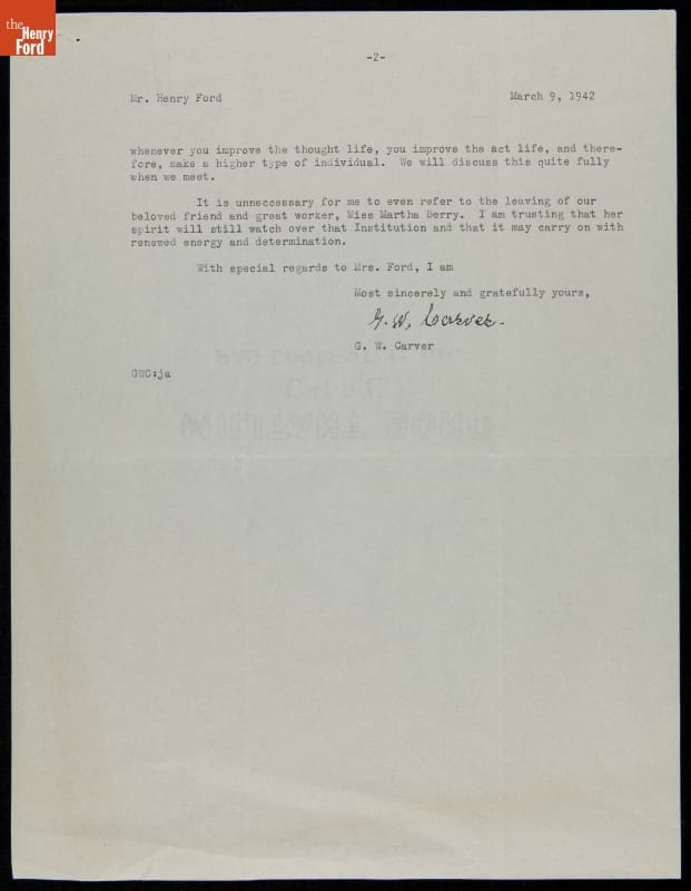 Letter from George Washington Carver to Henry Ford, March 9, 1942