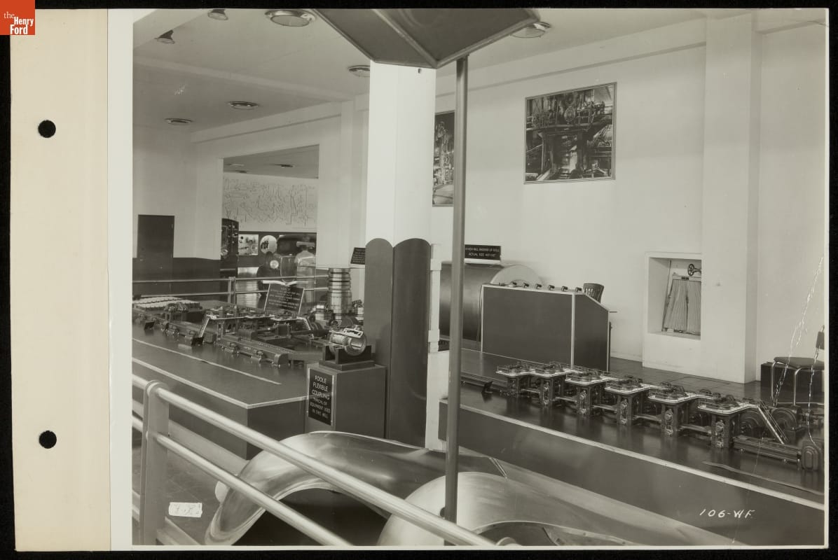 Chicago's 1933-34 Century of Progress Exposition used the theme of progress to encourage optimism during the Depression. The Ford Exhibition Building, which sat on eleven acres at the fair and featured industrial demonstrations and informative displays like this, became the most talked-about exhibit of 1934.