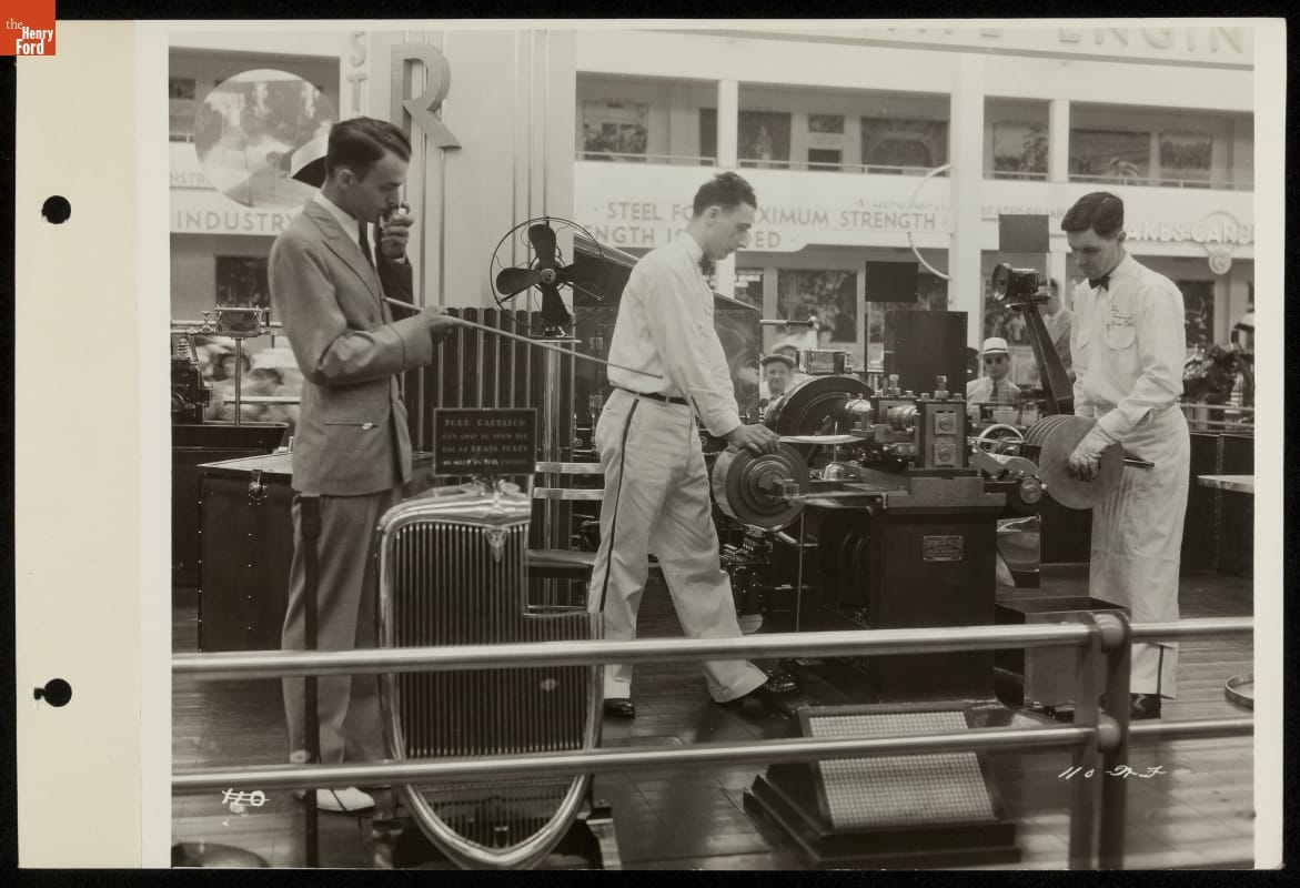 Chicago's 1933-34 Century of Progress Exposition used the theme of progress to encourage optimism during the Depression. The Ford Exhibition Building, which sat on eleven acres at the fair and featured industrial demonstrations and informative displays like this, became the most talked-about exhibit of 1934.