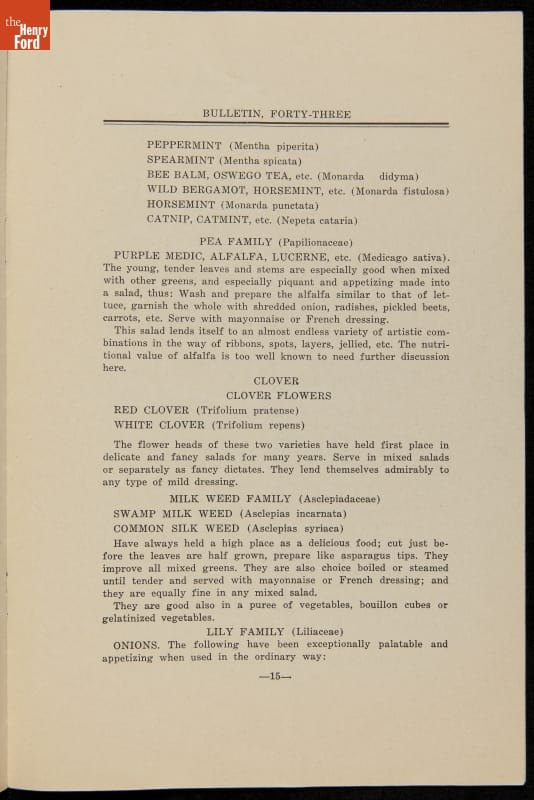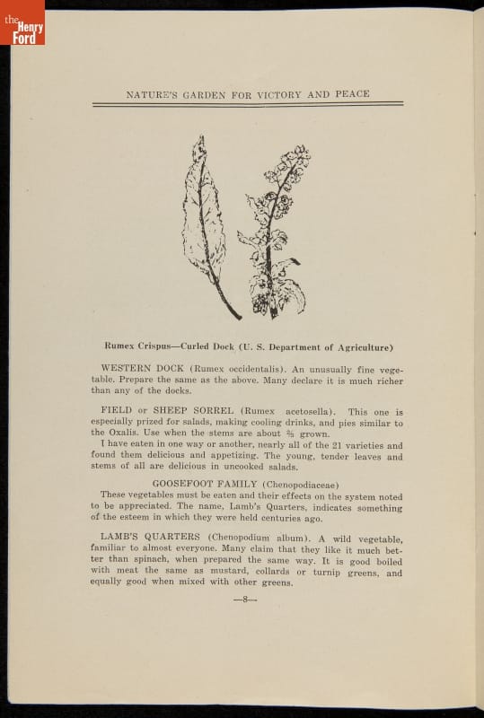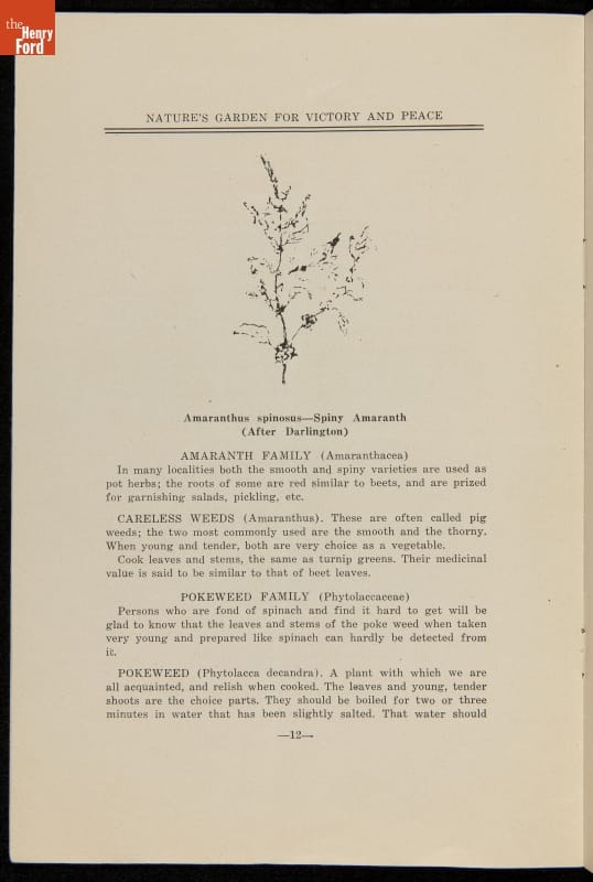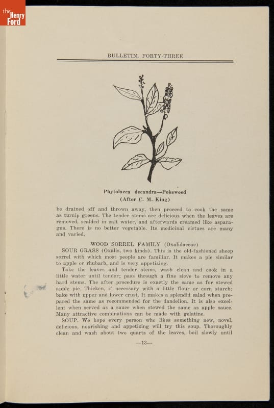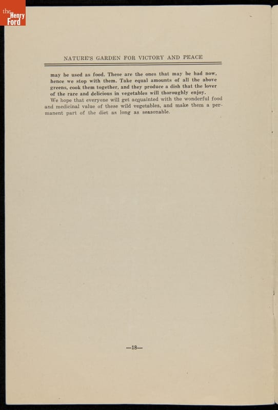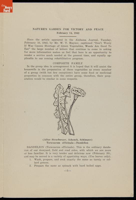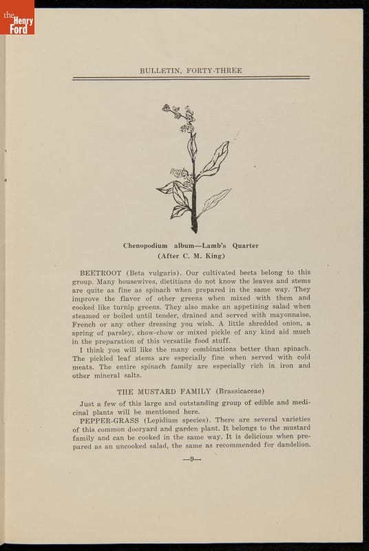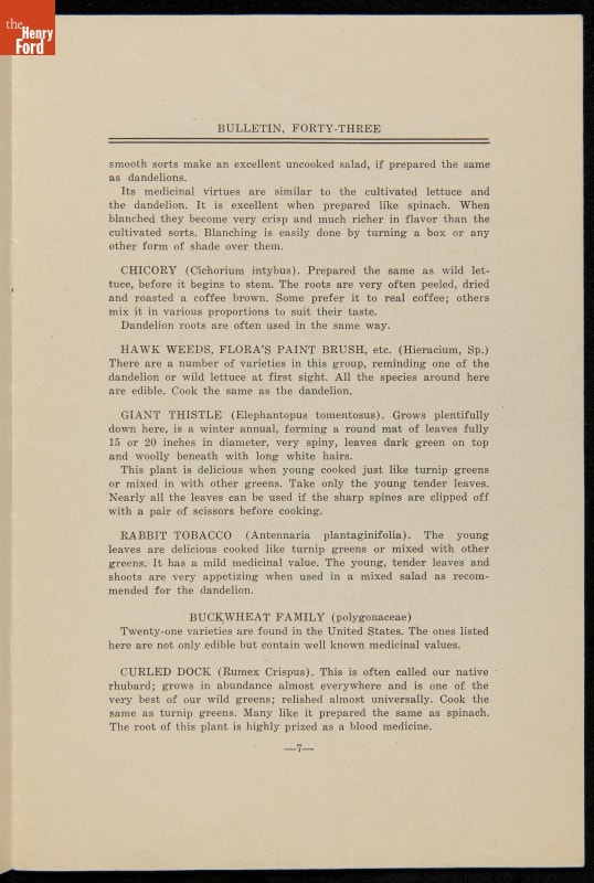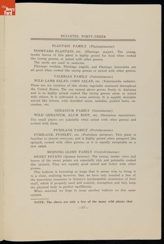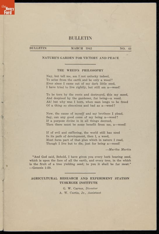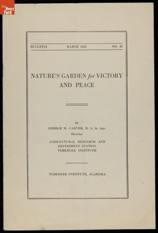 George Washington Carver directed the agricultural Experiment Station at Tuskegee Institute in Alabama. As part of his work, Carver wrote agricultural bulletins. In this bulletin, his last, Carver expanded on the value of wild edibles, one of his favorite topics. He encouraged readers to rely on wild plants if the war caused produce shortages. Carver believed that nature had already provided everything we needed to live well.