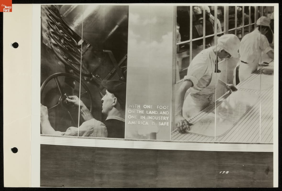 The Ford building at the 1933-1934 Chicago World's Fair was lined with murals depicting activity at the River Rouge Plant -- a symbol of industrial efficiency that exemplified the fair's Century of Progress theme.