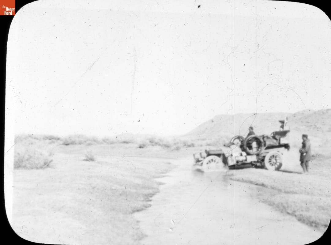 Thomas Flyer Crossing Stream, Pathfinder Tour before the New York to Seattle Race, 1909