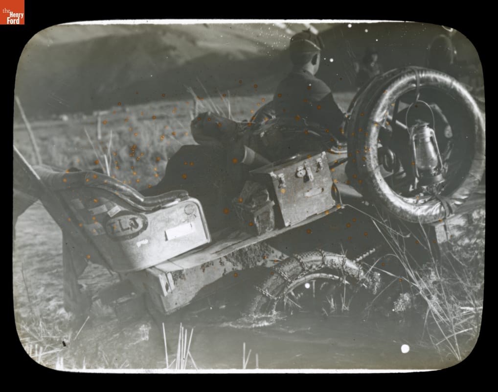 Thomas Flyer Stuck in a Ditch during the Pathfinder Tour Prior to the 1909 New York to Seattle Automobile Race