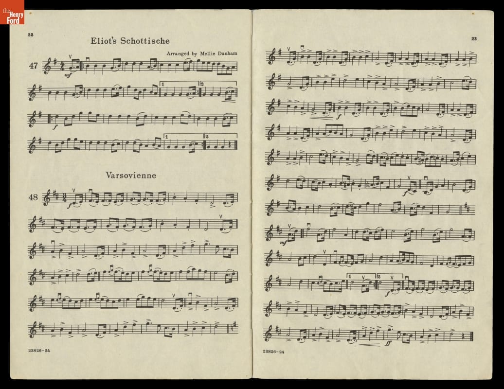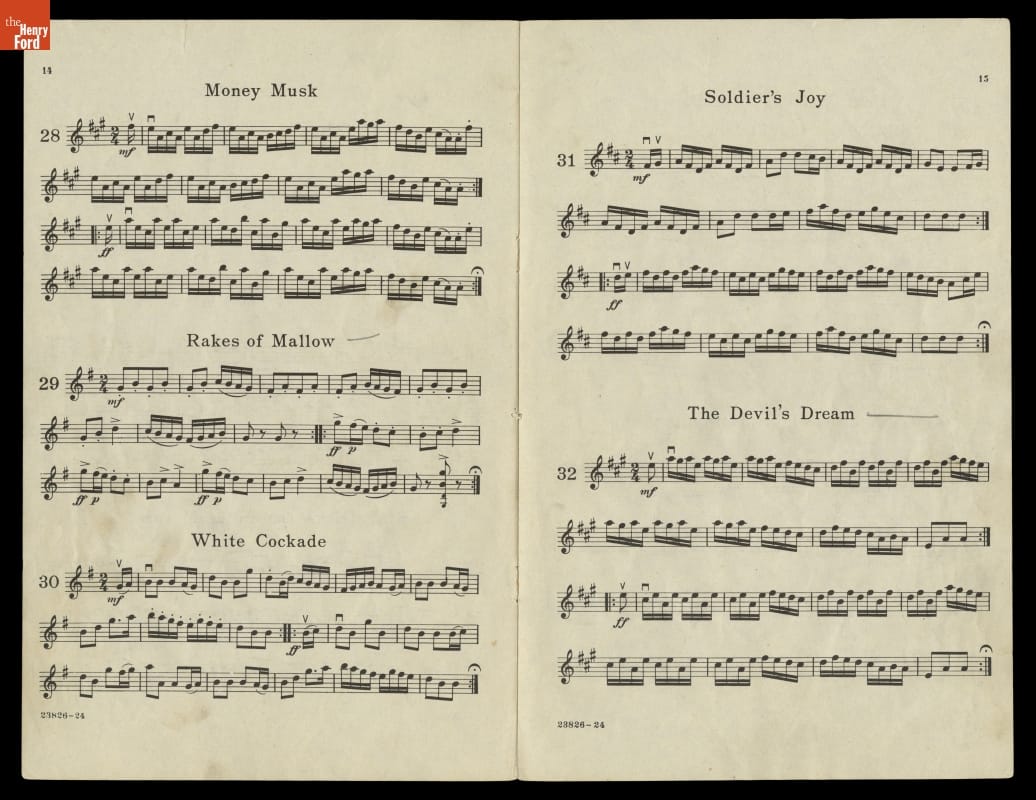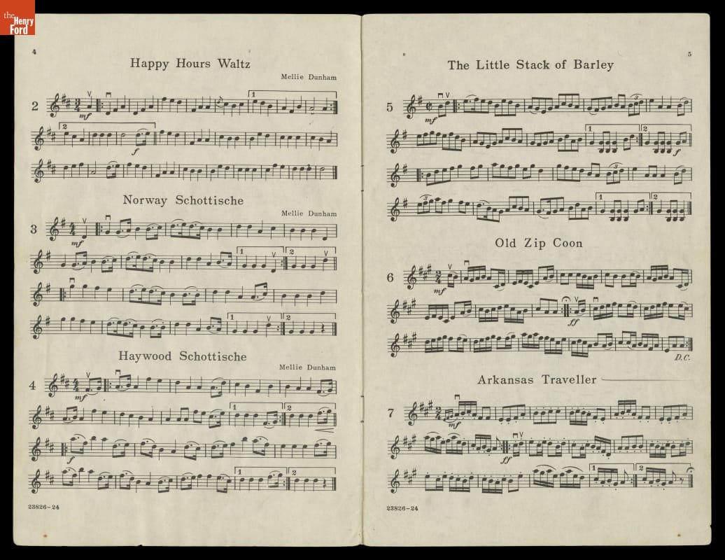 Fiddler Mellie Dunham's fame as a Henry Ford favorite garnered him enormous publicity--and he took full advantage of it. After playing for Ford, Dunham took a train to New York, where he signed a $500-a-week contract with the Keith-Albee vaudeville circuit. He played throughout the United States and Canada for seventeen months. Dunham also published this 1926 book of "Fiddlin' Dance Tunes."