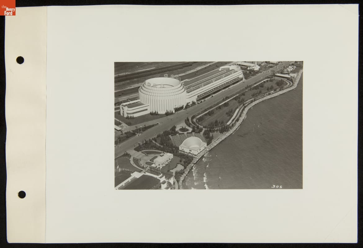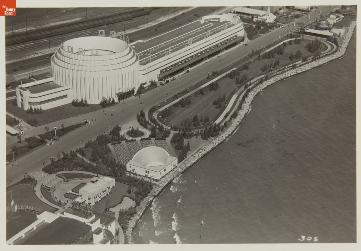 Aerial View of the Ford Exhibition Building and Symphony Gardens, Century of Progress International Exposition, Chicago, 1934