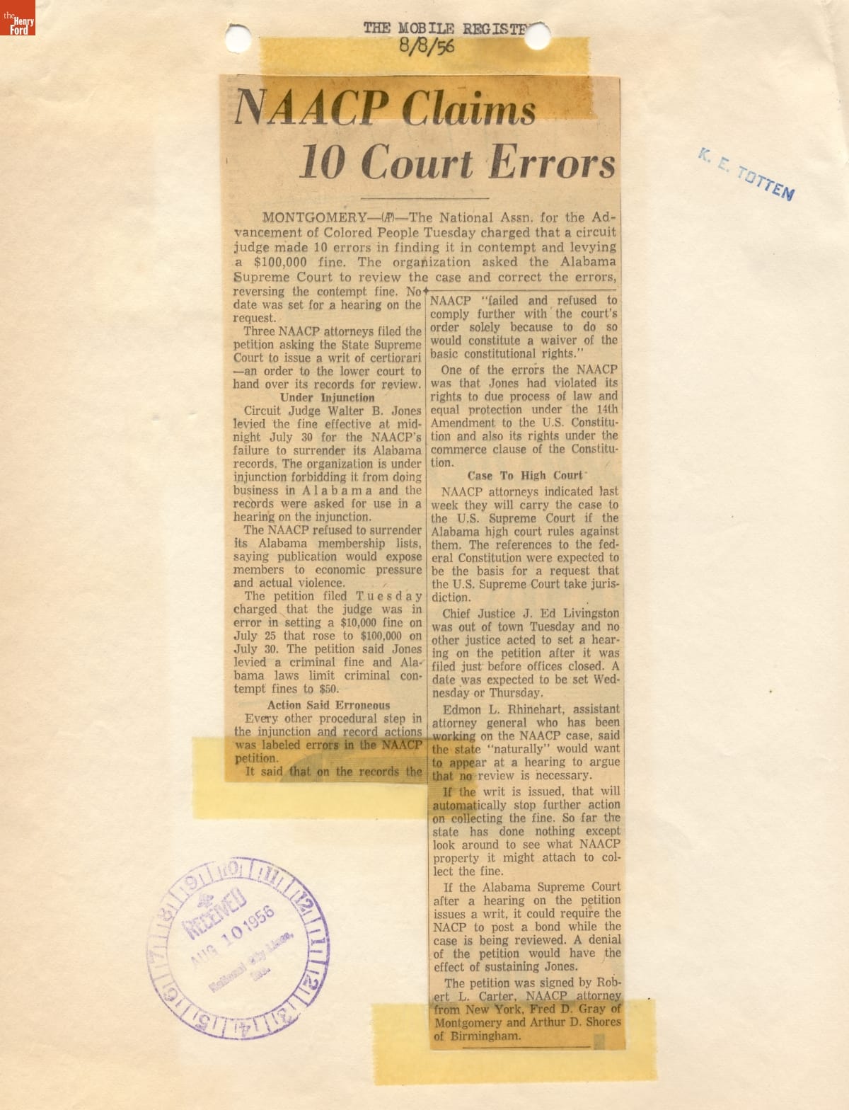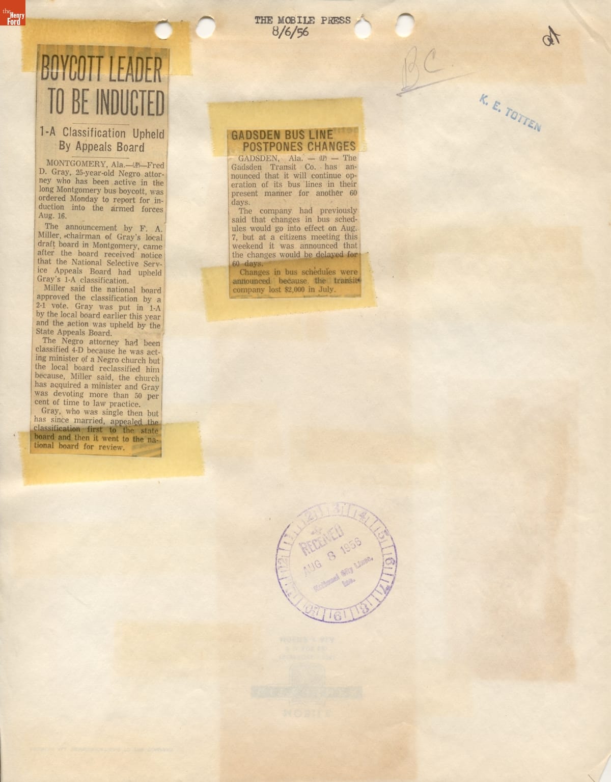 THF147478 / Montgomery Bus Boycott Scrapbook, November 1955 - April 1957 (Part 6 of 6) / August 8, 1956