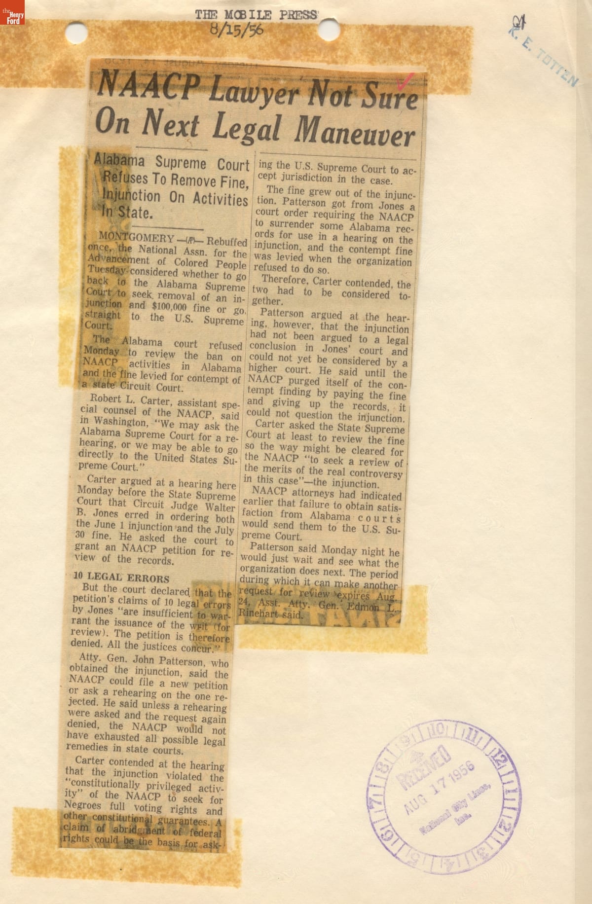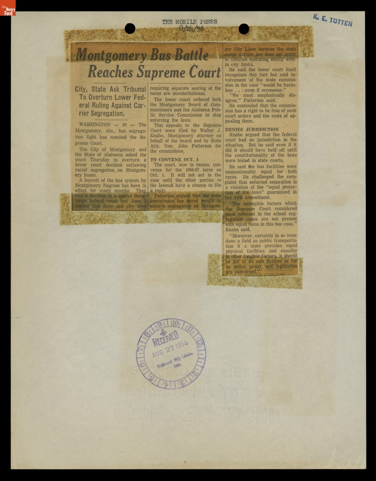 THF147479 / Montgomery Bus Boycott Scrapbook, November 1955 - April 1957 (Part 6 of 6) / August 15, 1956