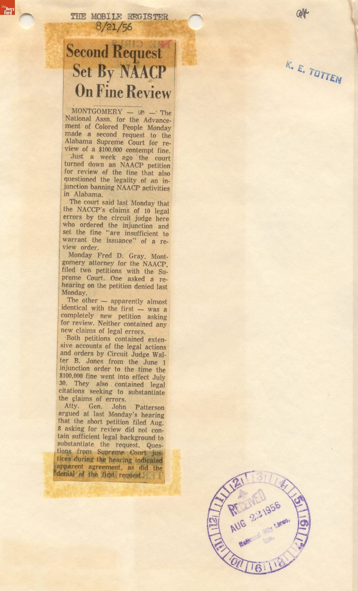 THF147480 / Montgomery Bus Boycott Scrapbook, November 1955 - April 1957 (Part 6 of 6) / August 21, 1956