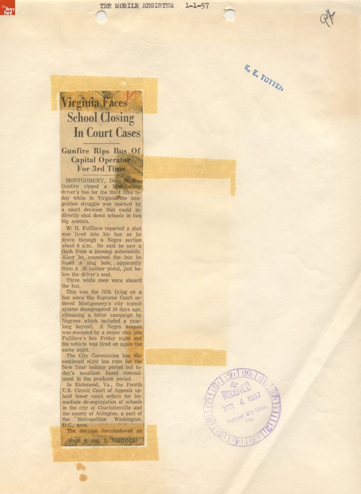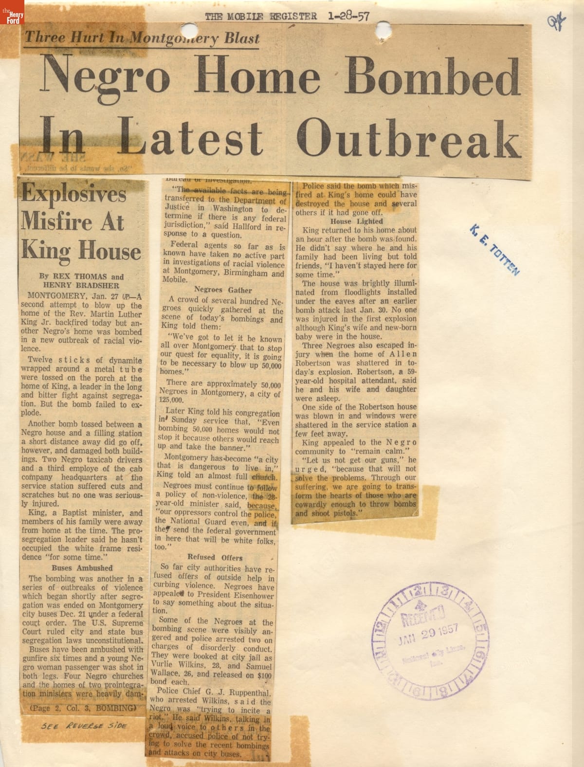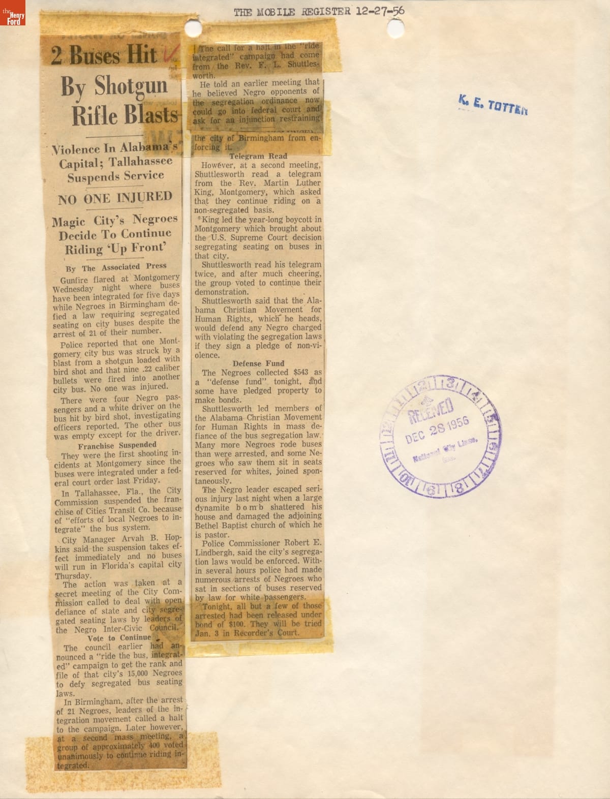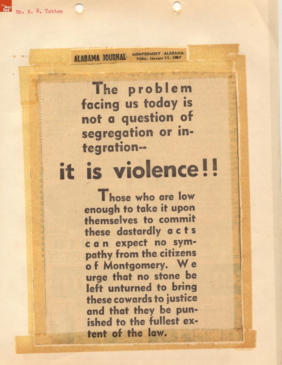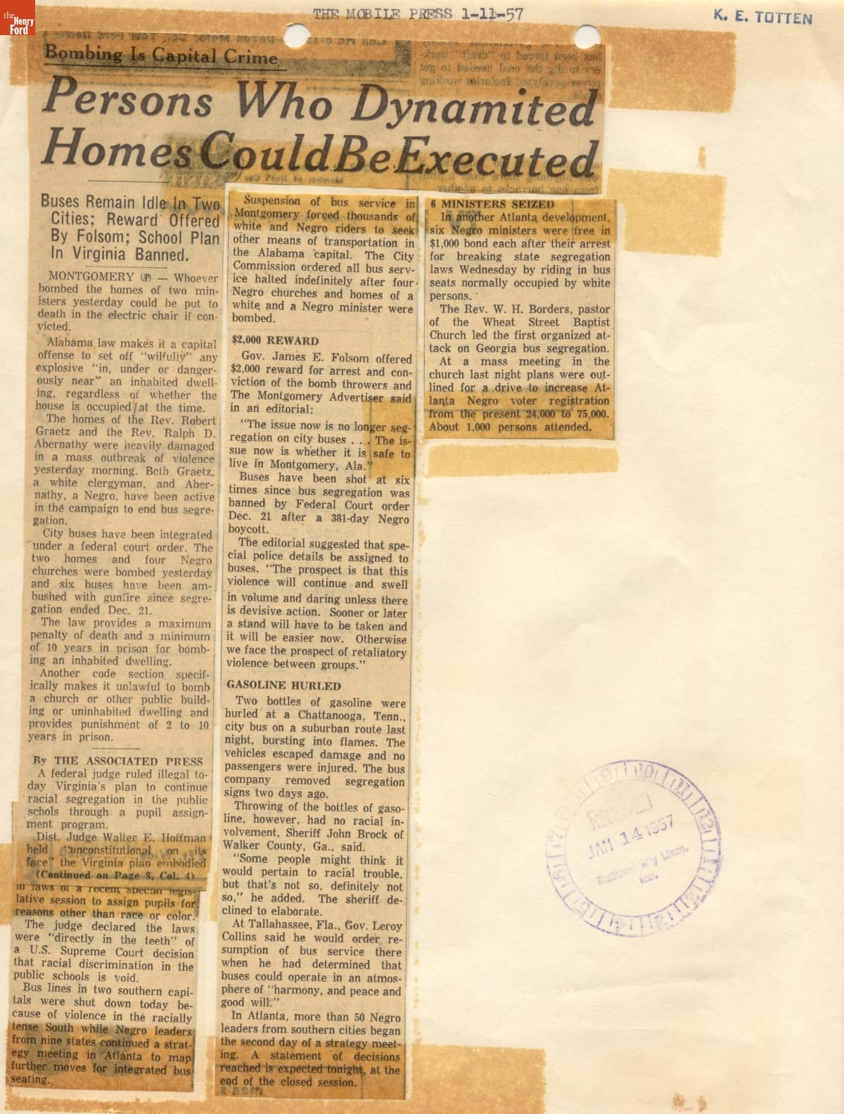 THF147482 / Montgomery Bus Boycott Scrapbook, November 1955 - April 1957 (Part 6 of 6) / August 24, 1956