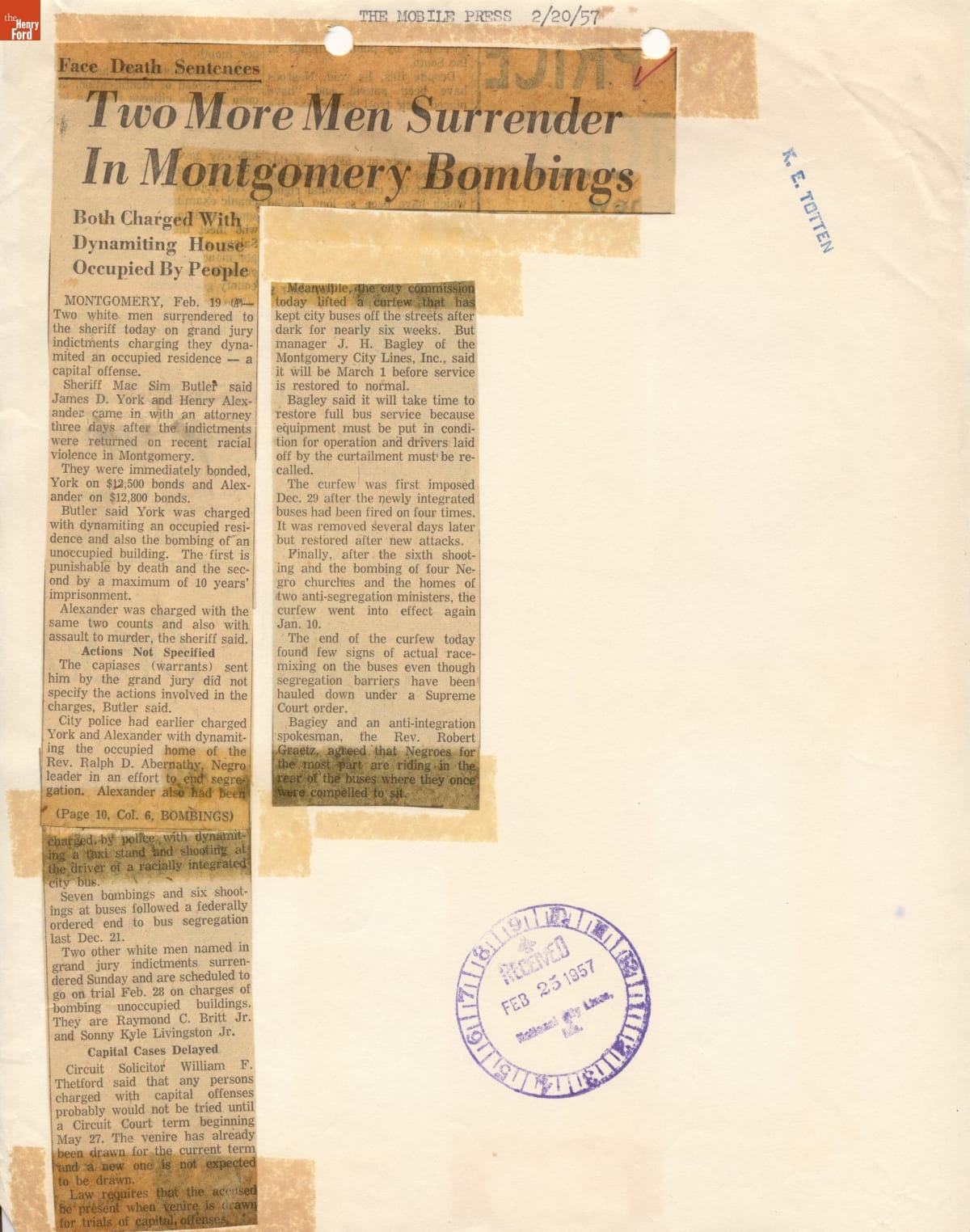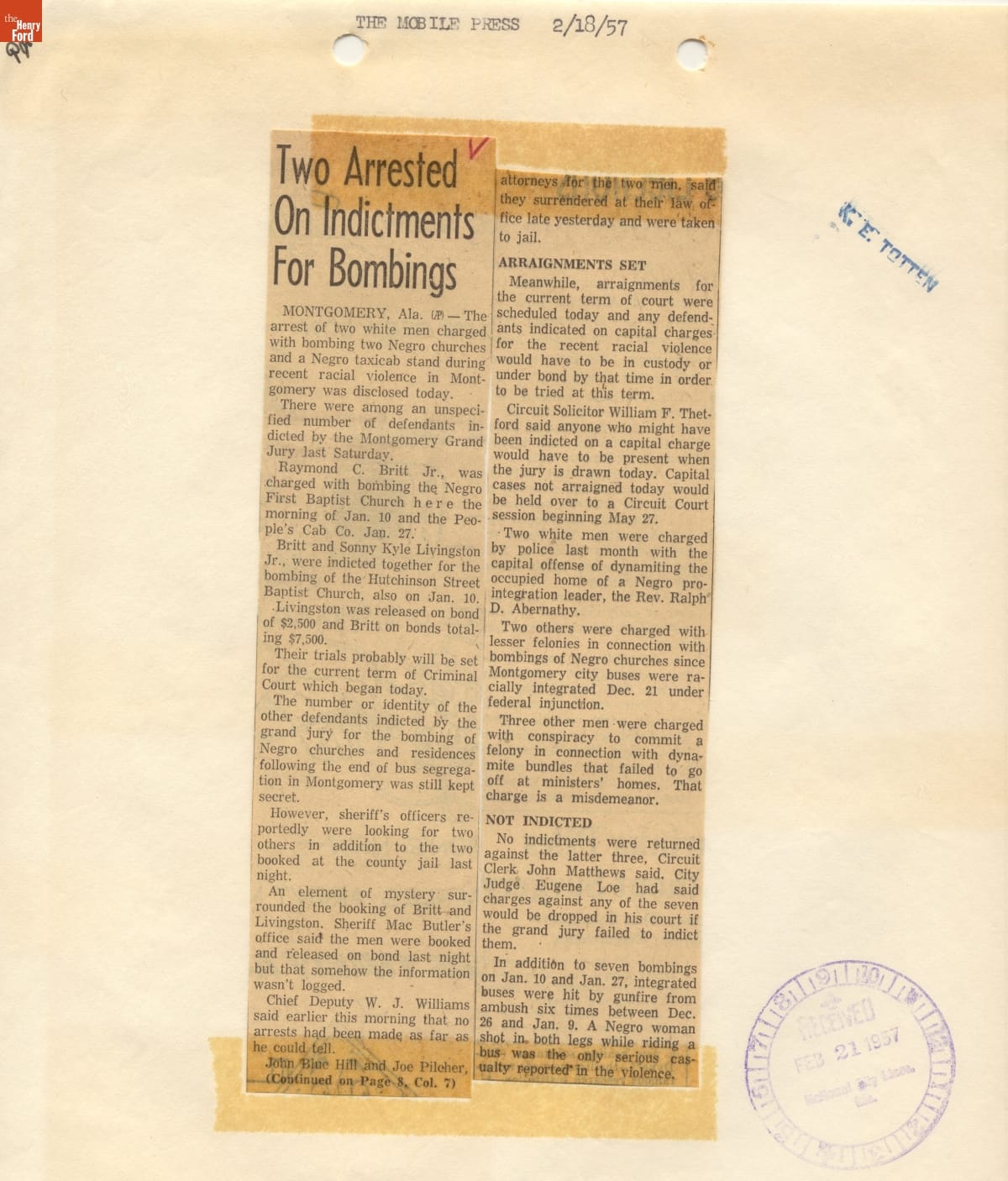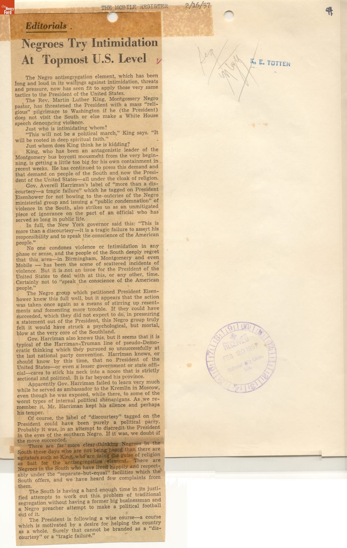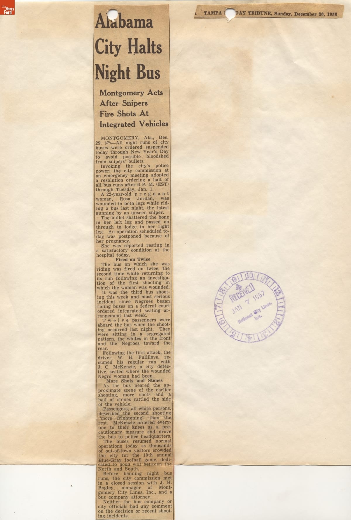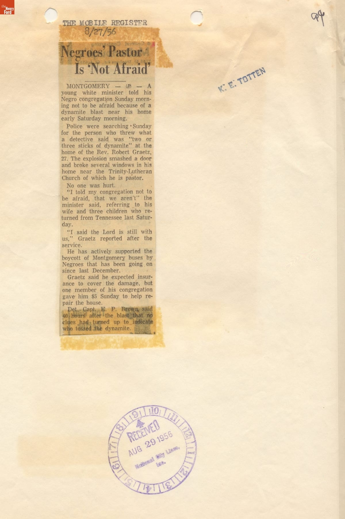 THF147482 / Montgomery Bus Boycott Scrapbook, November 1955 - April 1957 (Part 6 of 6) / August 24, 1956