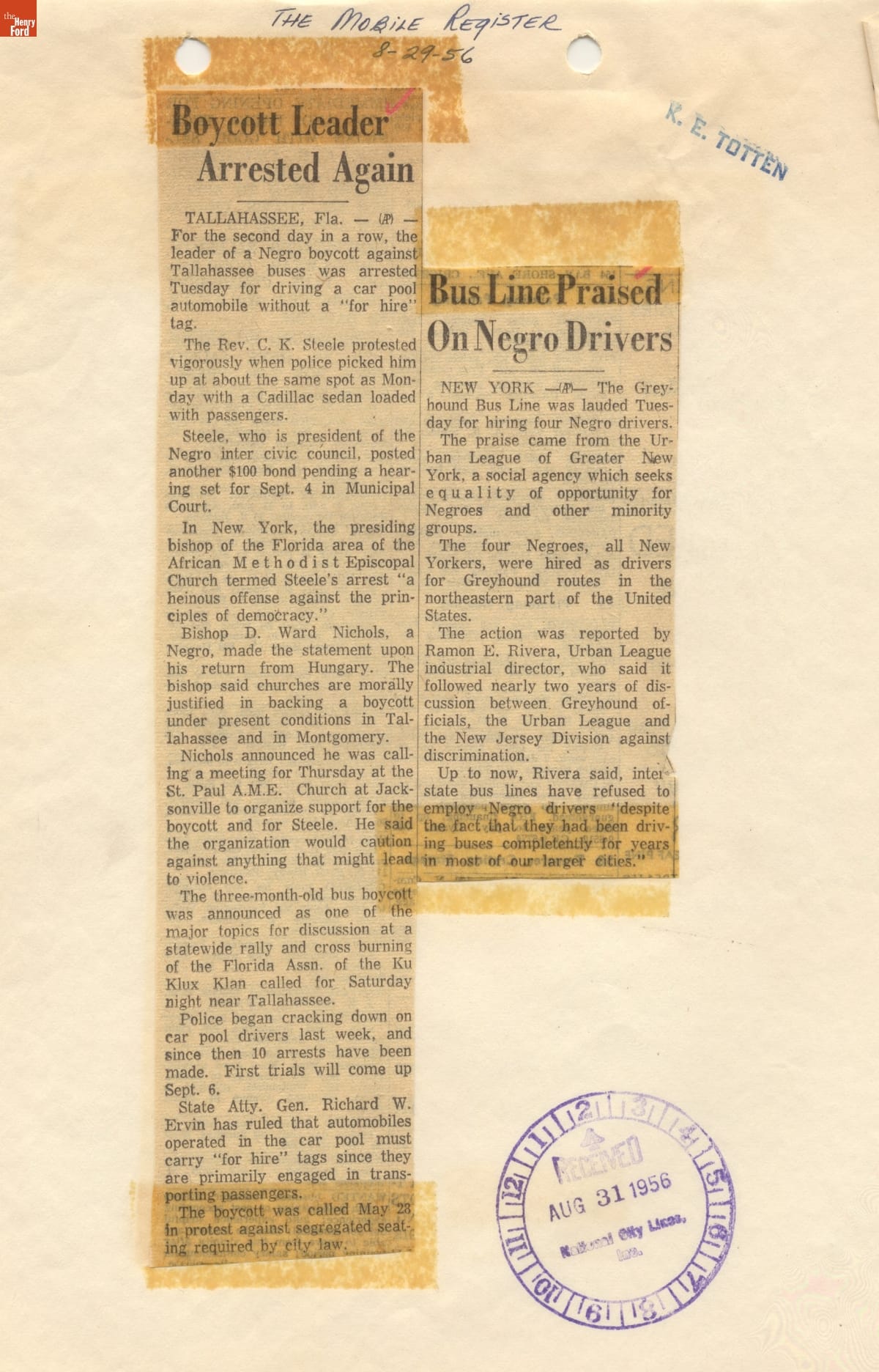 THF147484 / Montgomery Bus Boycott Scrapbook, November 1955 - April 1957 (Part 6 of 6) / August 29, 1956