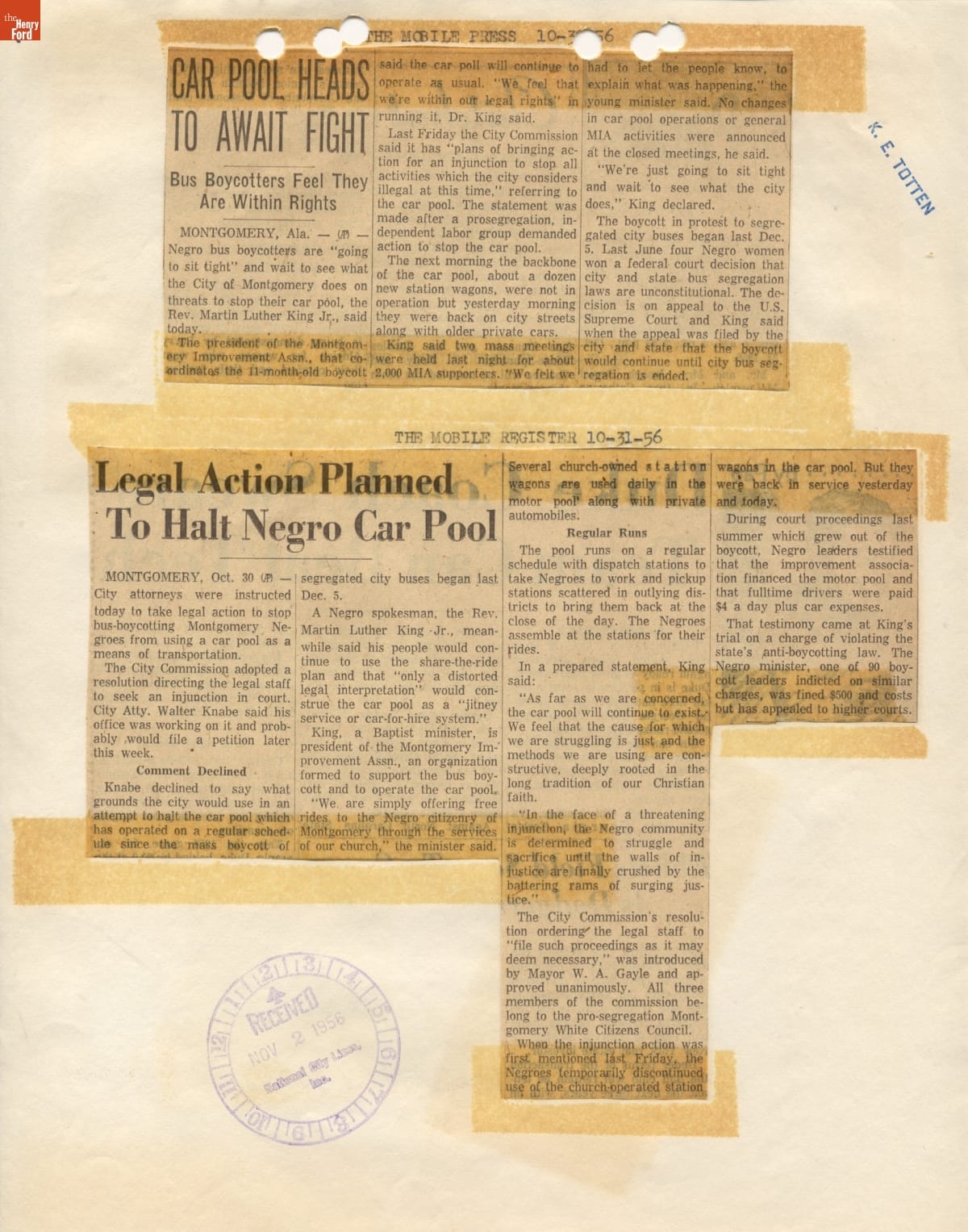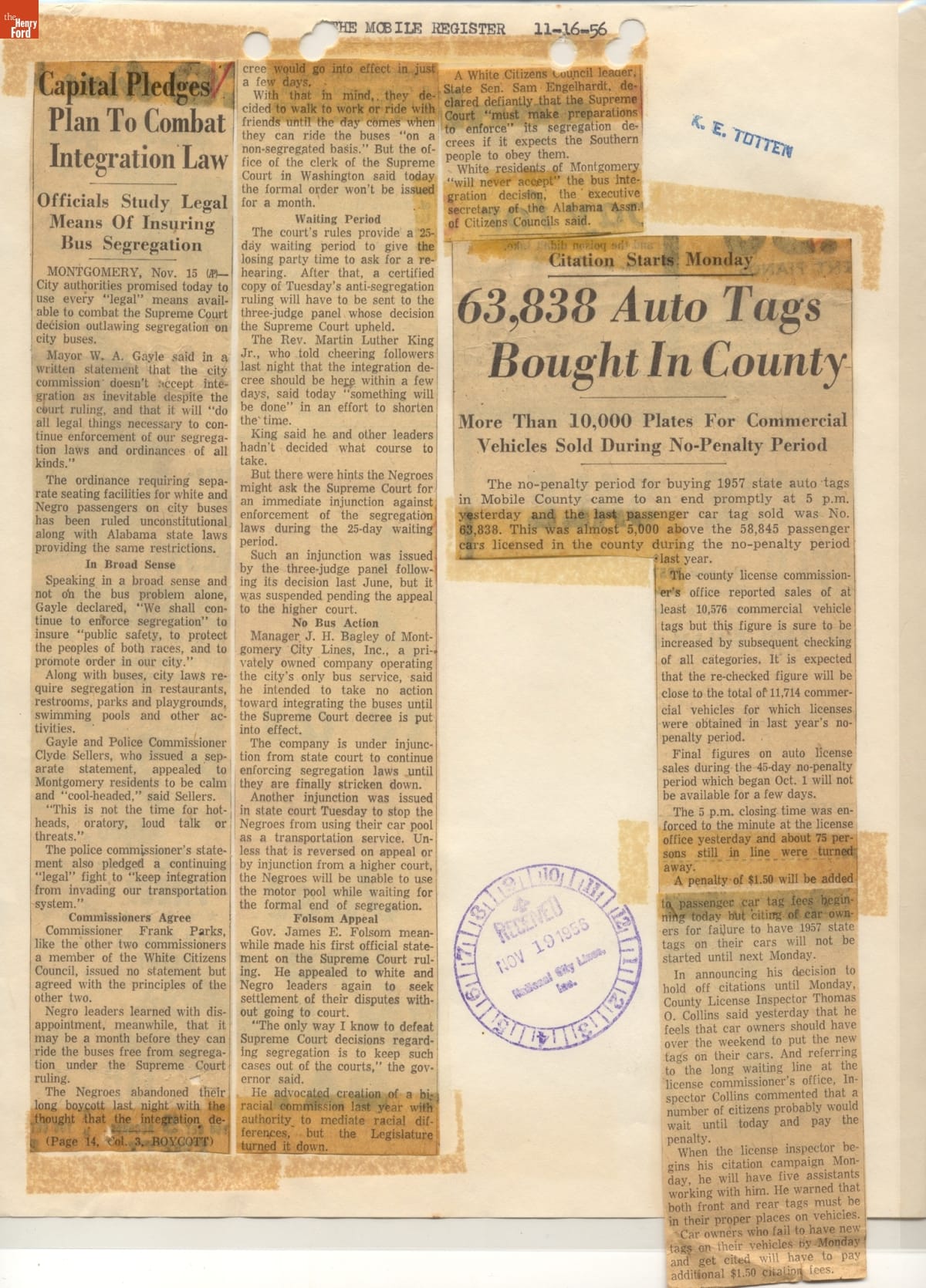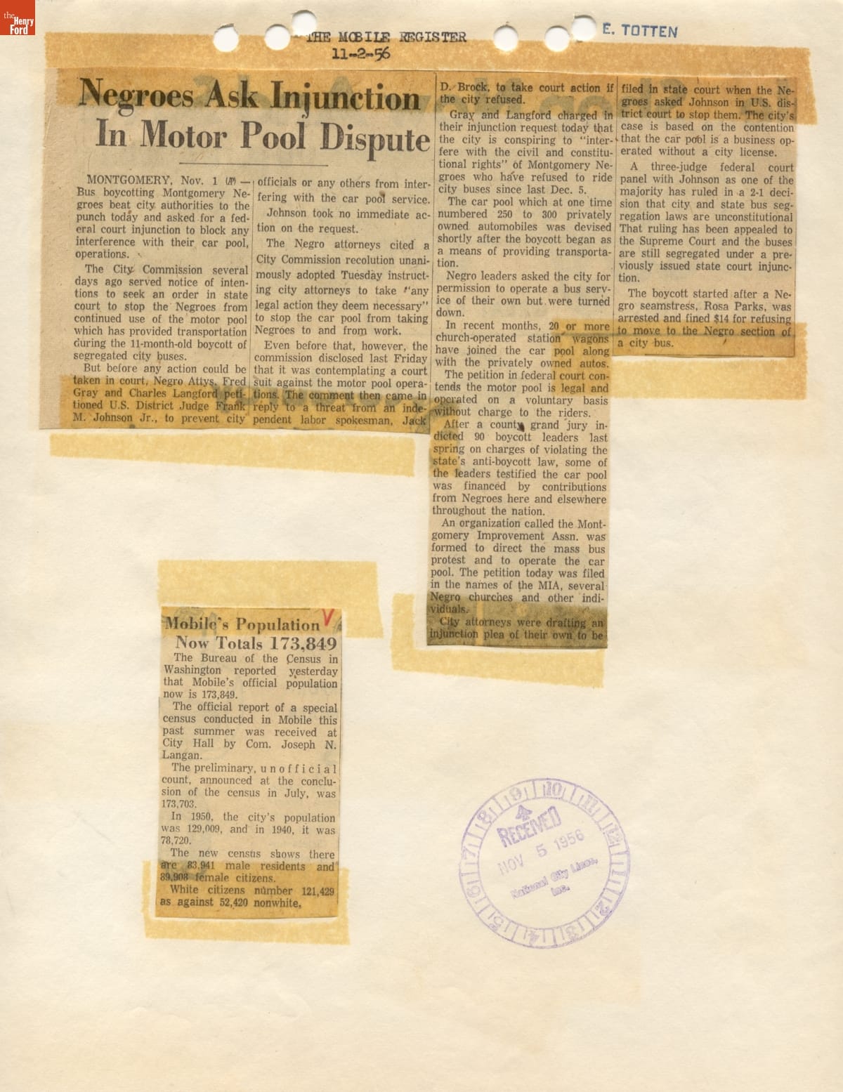 THF147487 / Montgomery Bus Boycott Scrapbook, November 1955 - April 1957 (Part 6 of 6) / November 3, 1956