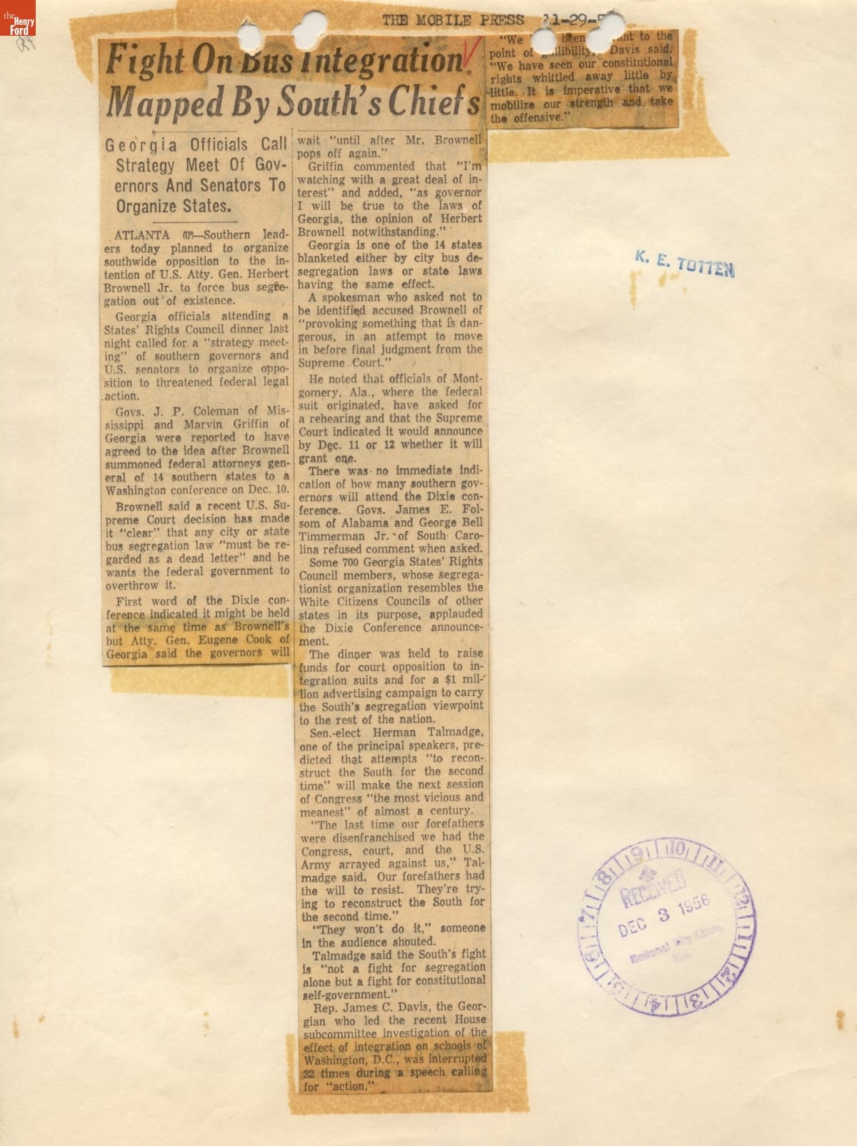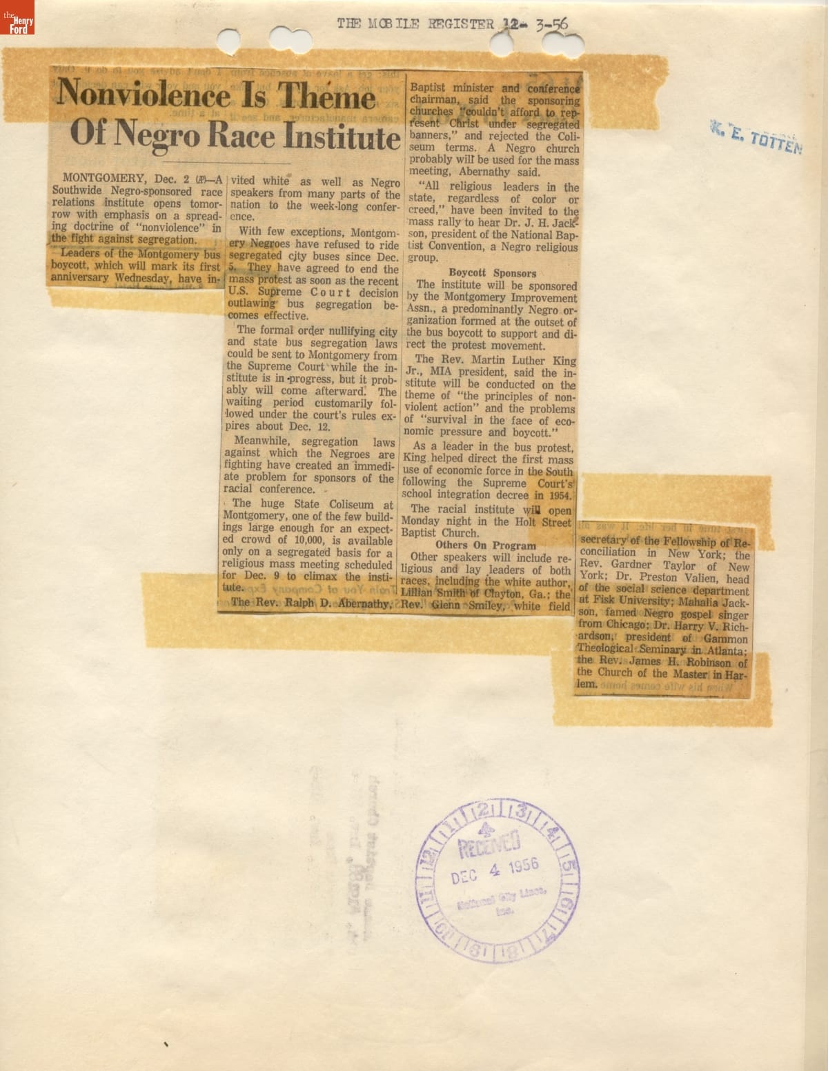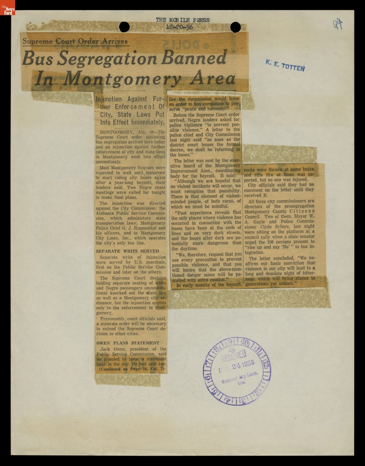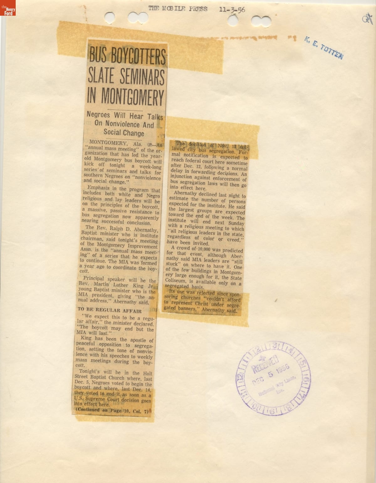THF147504 / Montgomery Bus Boycott Scrapbook, November 1955 - April 1957 (Part 6 of 6) / December 3, 1956