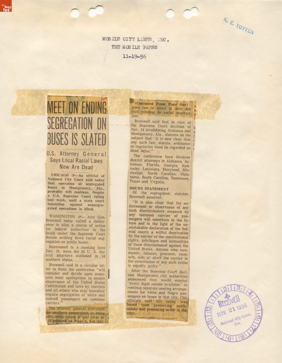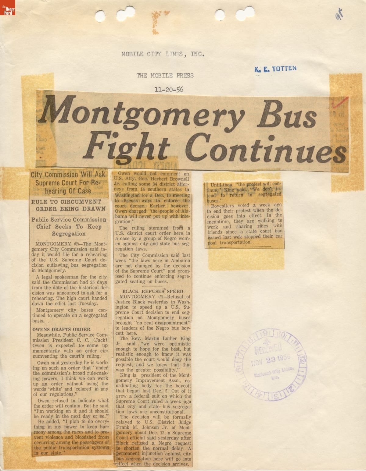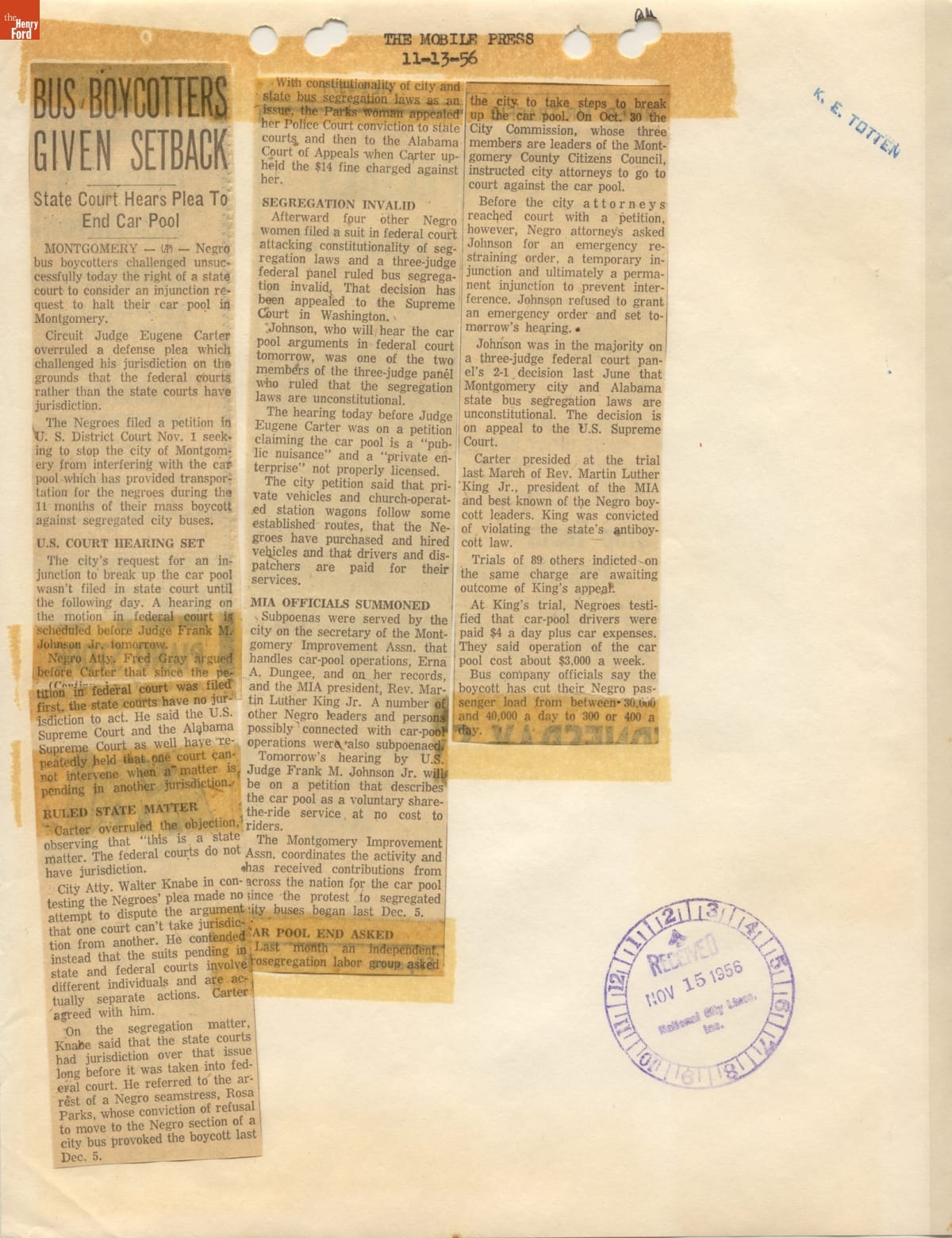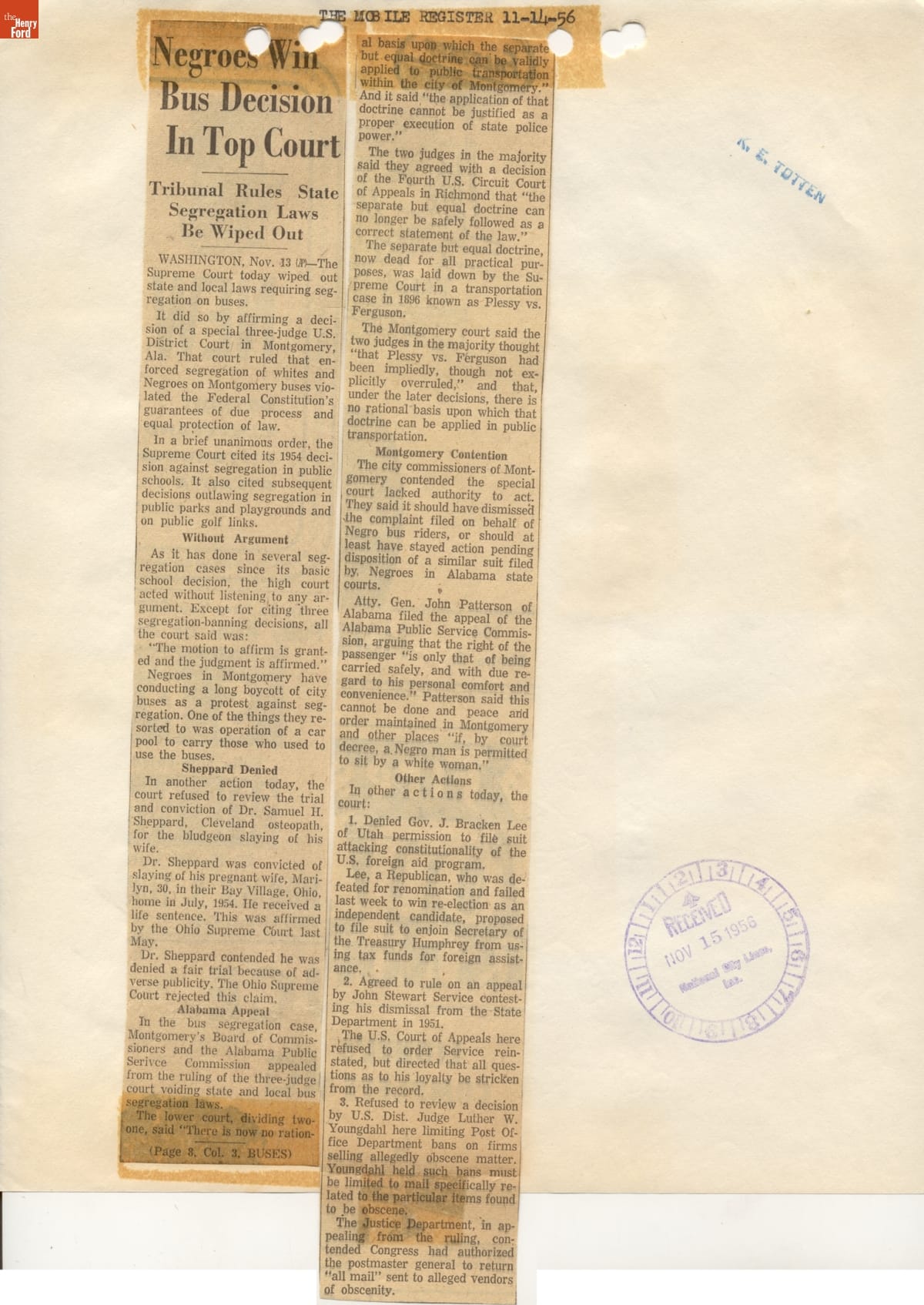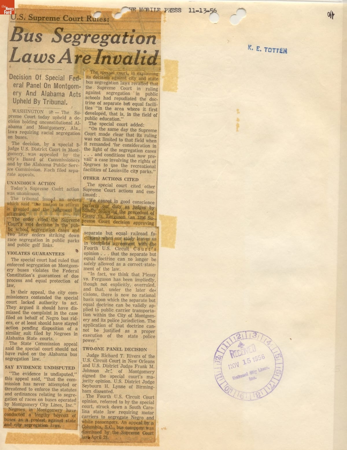 THF147490 / Montgomery Bus Boycott Scrapbook, November 1955 - April 1957 (Part 6 of 6) / November 14, 1956