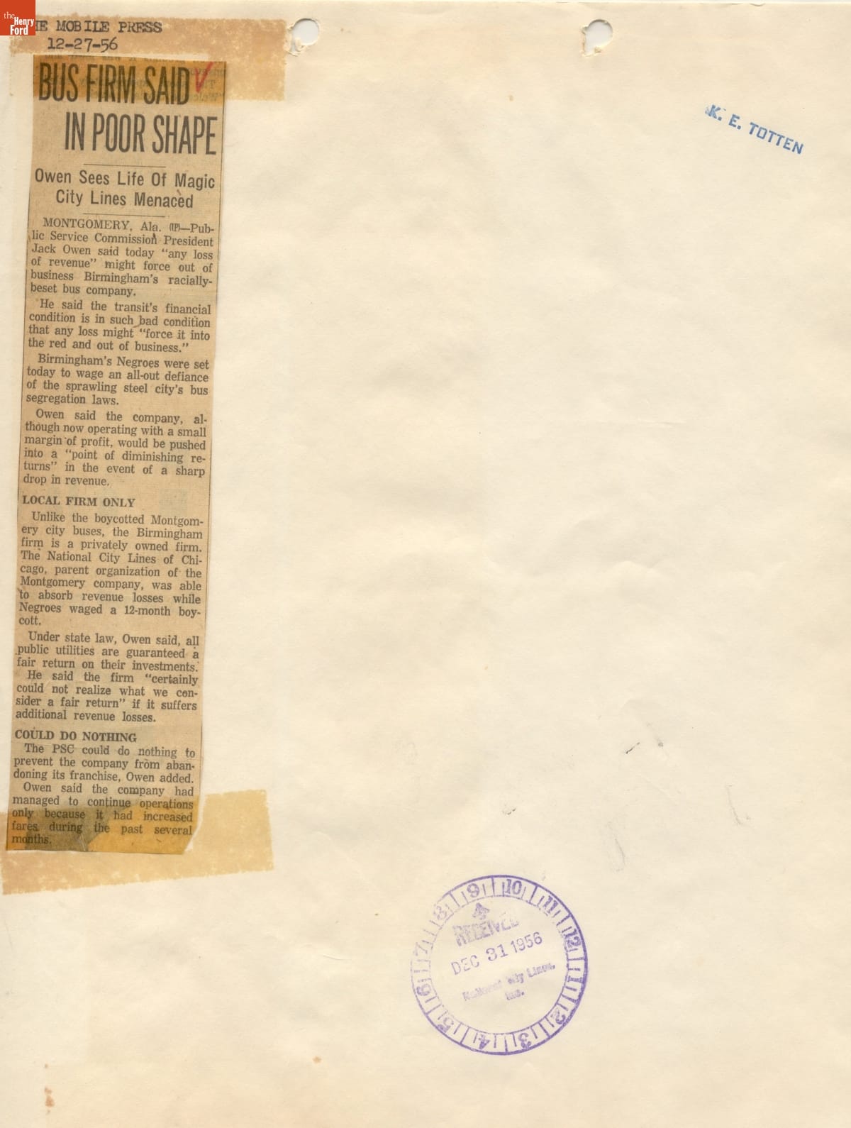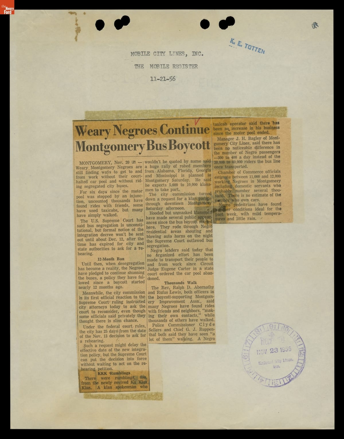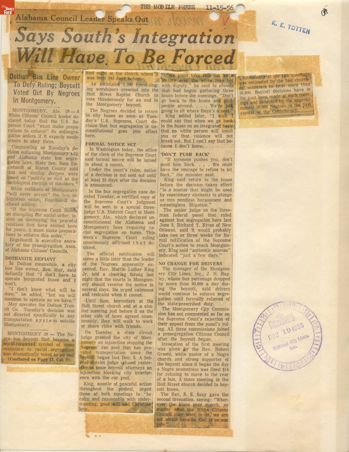 THF147519 / Montgomery Bus Boycott Scrapbook, November 1955 - April 1957 (Part 6 of 6) / December 31, 1956