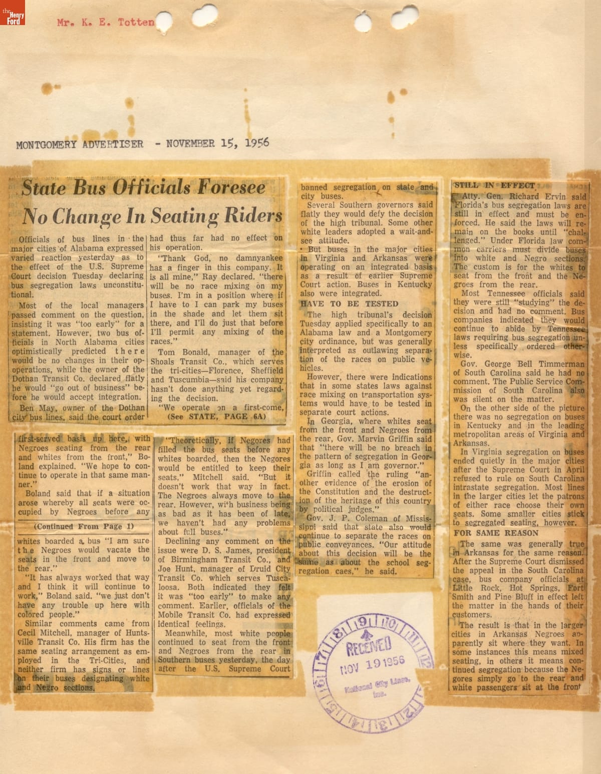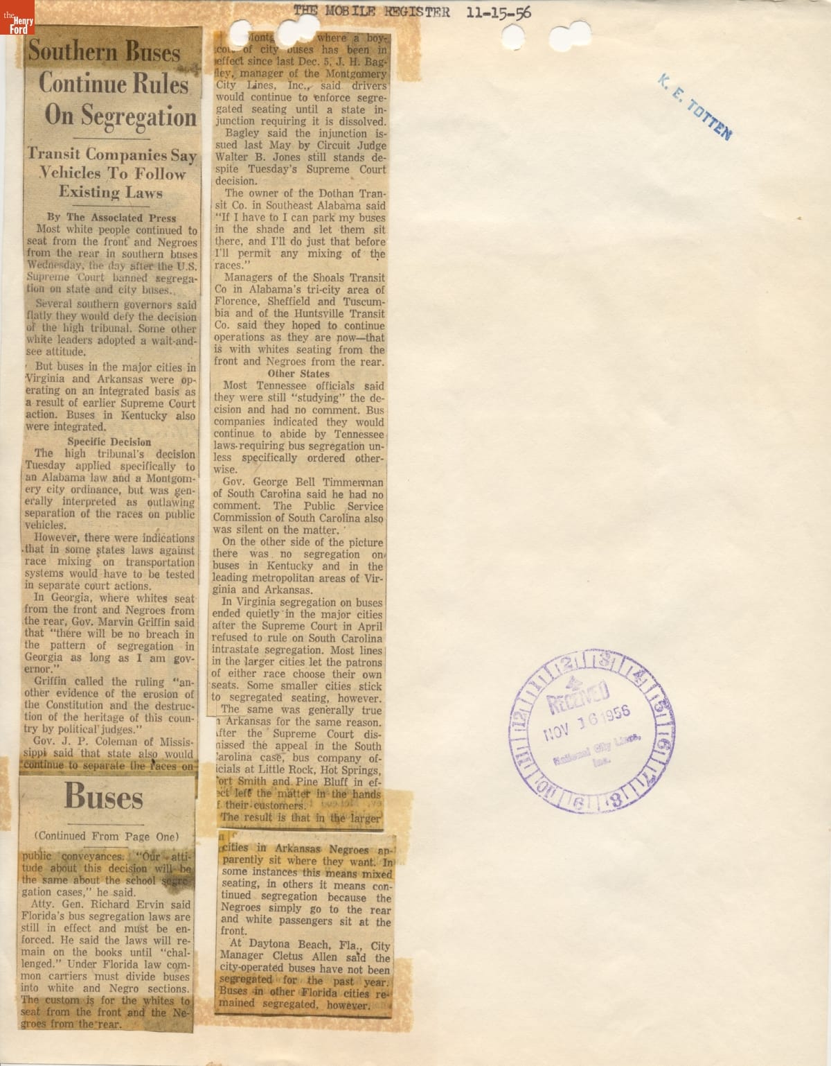 THF147496 / Montgomery Bus Boycott Scrapbook, November 1955 - April 1957 (Part 6 of 6) / November 15, 1956