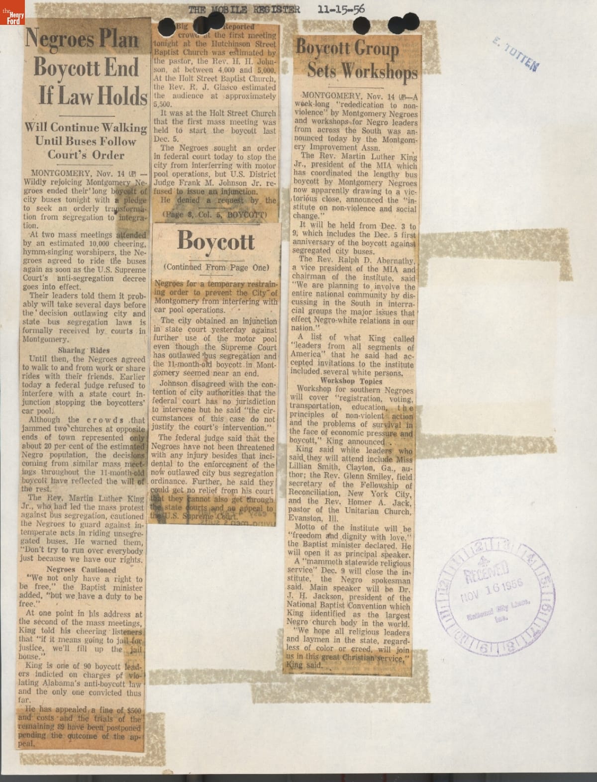 THF147494 / Montgomery Bus Boycott Scrapbook, November 1955 - April 1957 (Part 6 of 6) / November 15, 1956