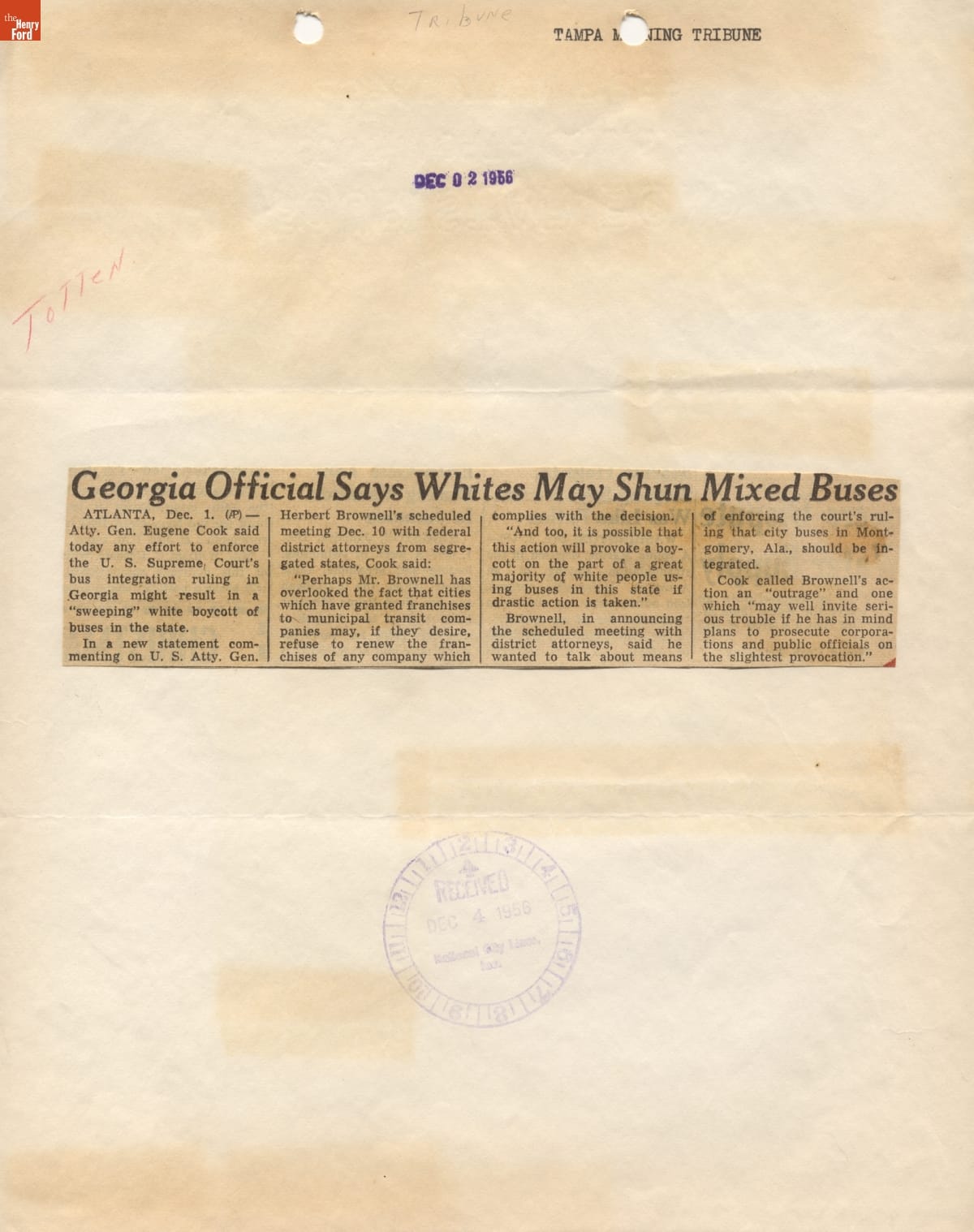 THF147503 / Montgomery Bus Boycott Scrapbook, November 1955 - April 1957 (Part 6 of 6) / December 2, 1956