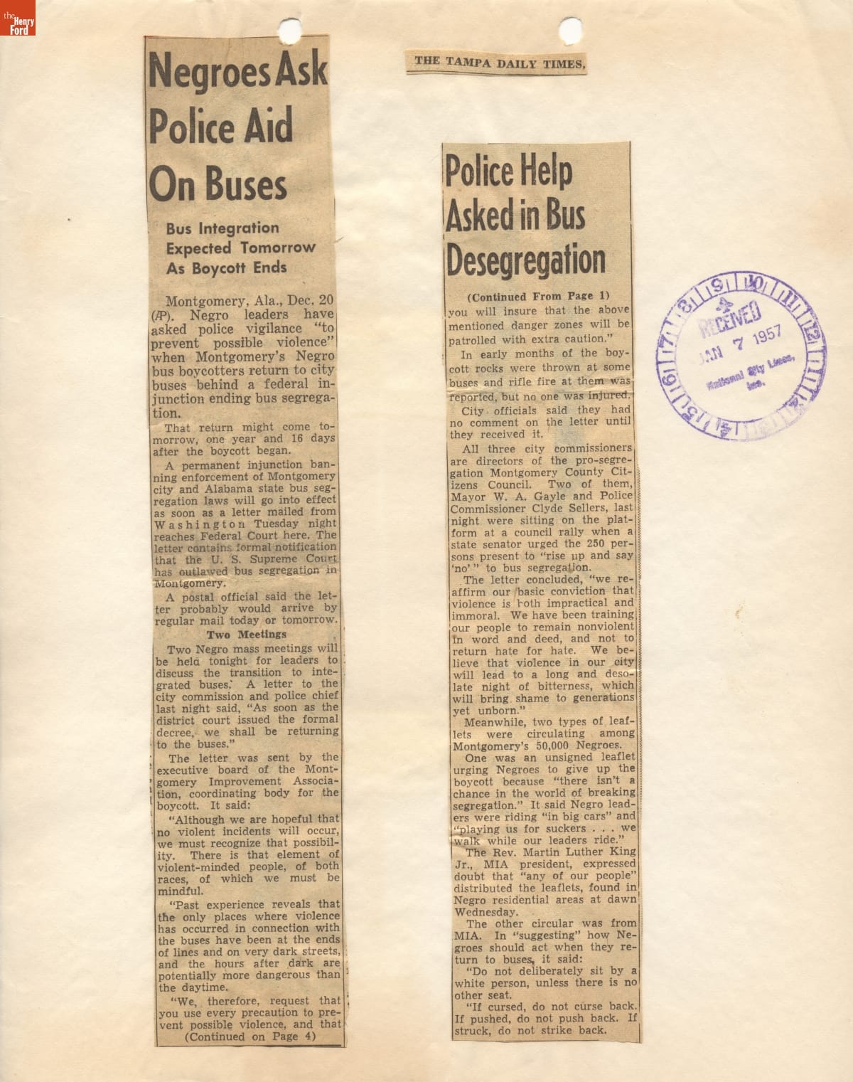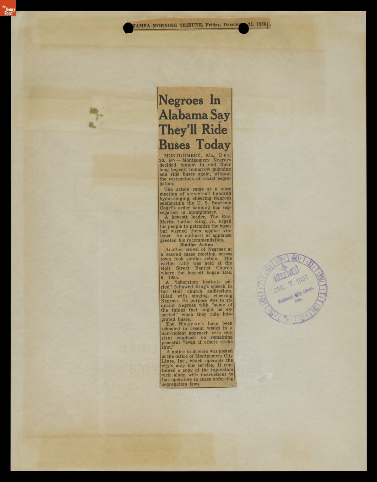 THF147515 / Montgomery Bus Boycott Scrapbook, November 1955 - April 1957 (Part 6 of 6) / December 29, 1956