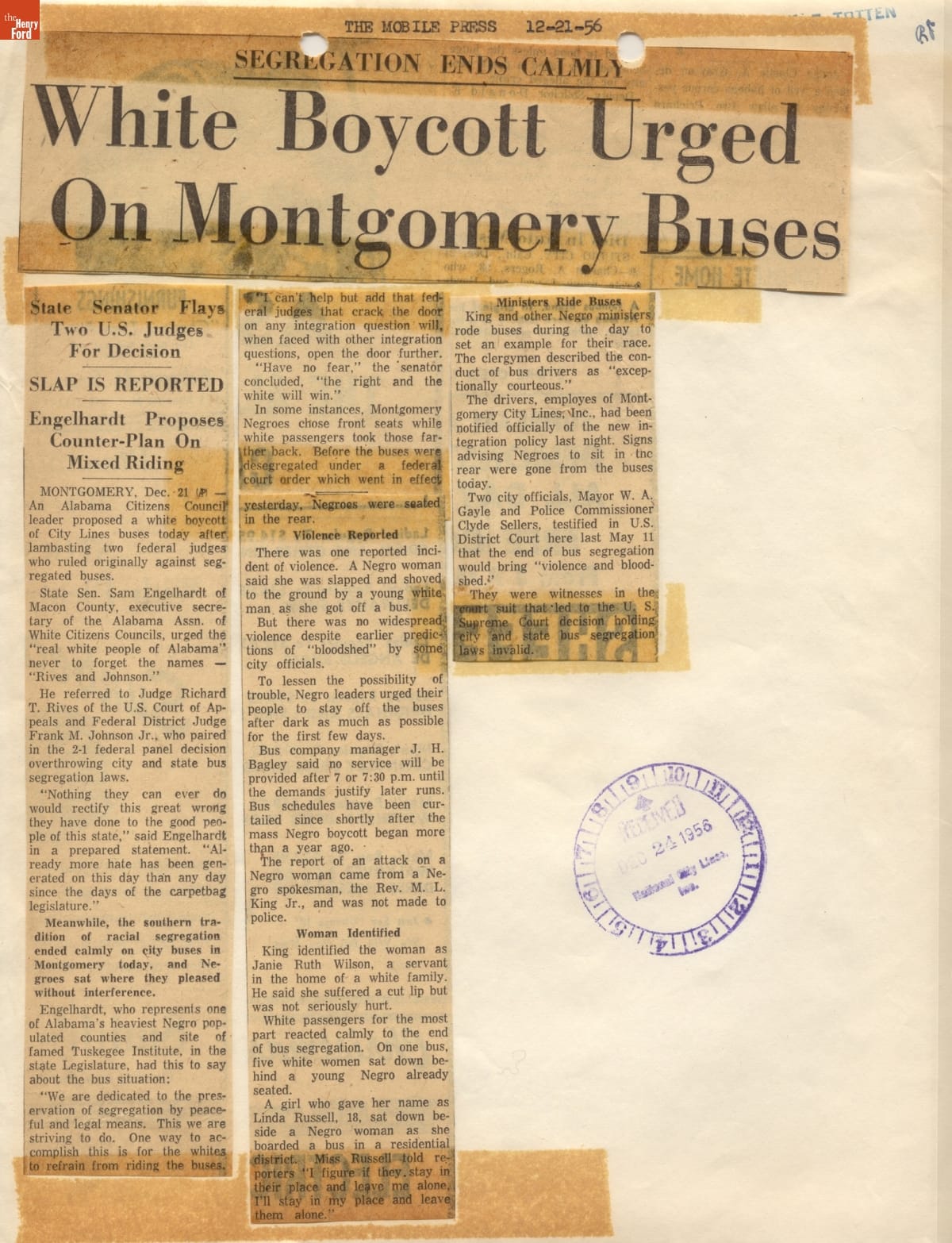 THF147510 / Montgomery Bus Boycott Scrapbook, November 1955 - April 1957 (Part 6 of 6) / December 25, 1956