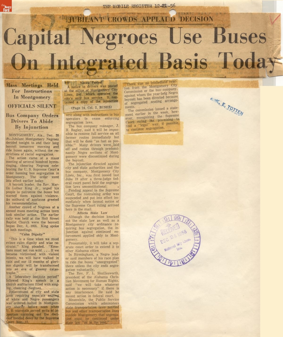 THF147508 / Montgomery Bus Boycott Scrapbook, November 1955 - April 1957 (Part 6 of 6) / December 21, 1956