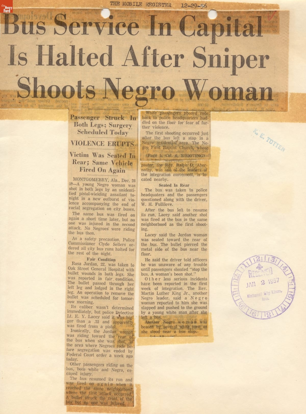 THF147534 / Montgomery Bus Boycott Scrapbook, November 1955 - April 1957 (Part 6 of 6) / January 15, 1957