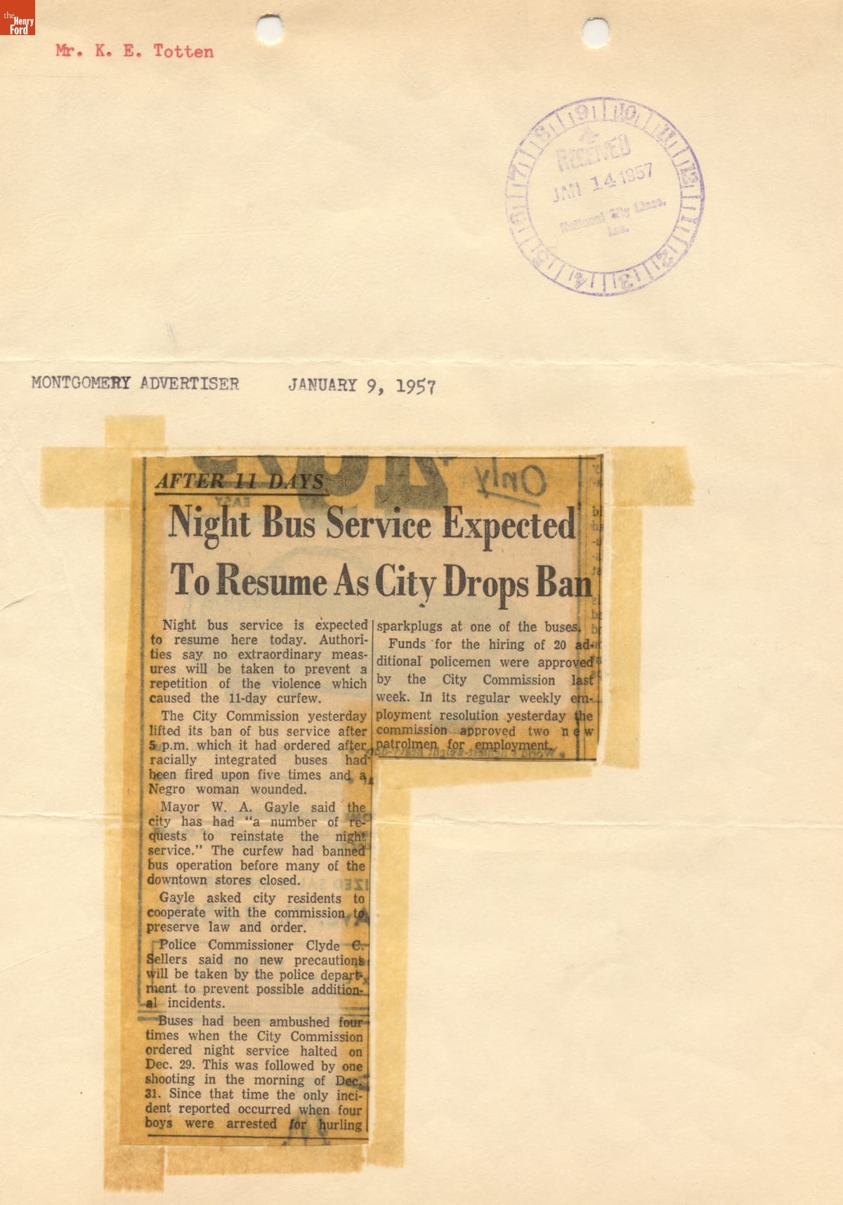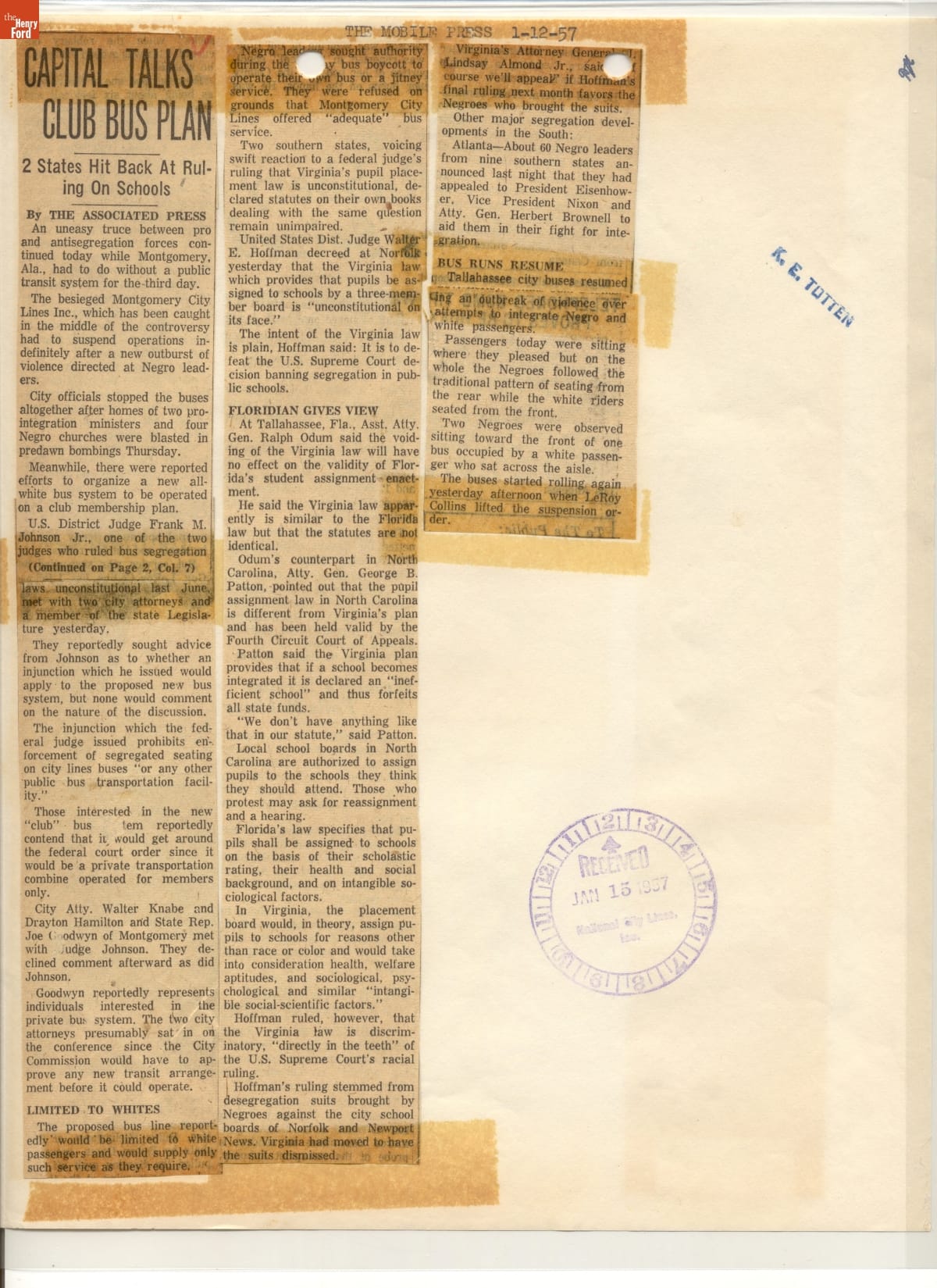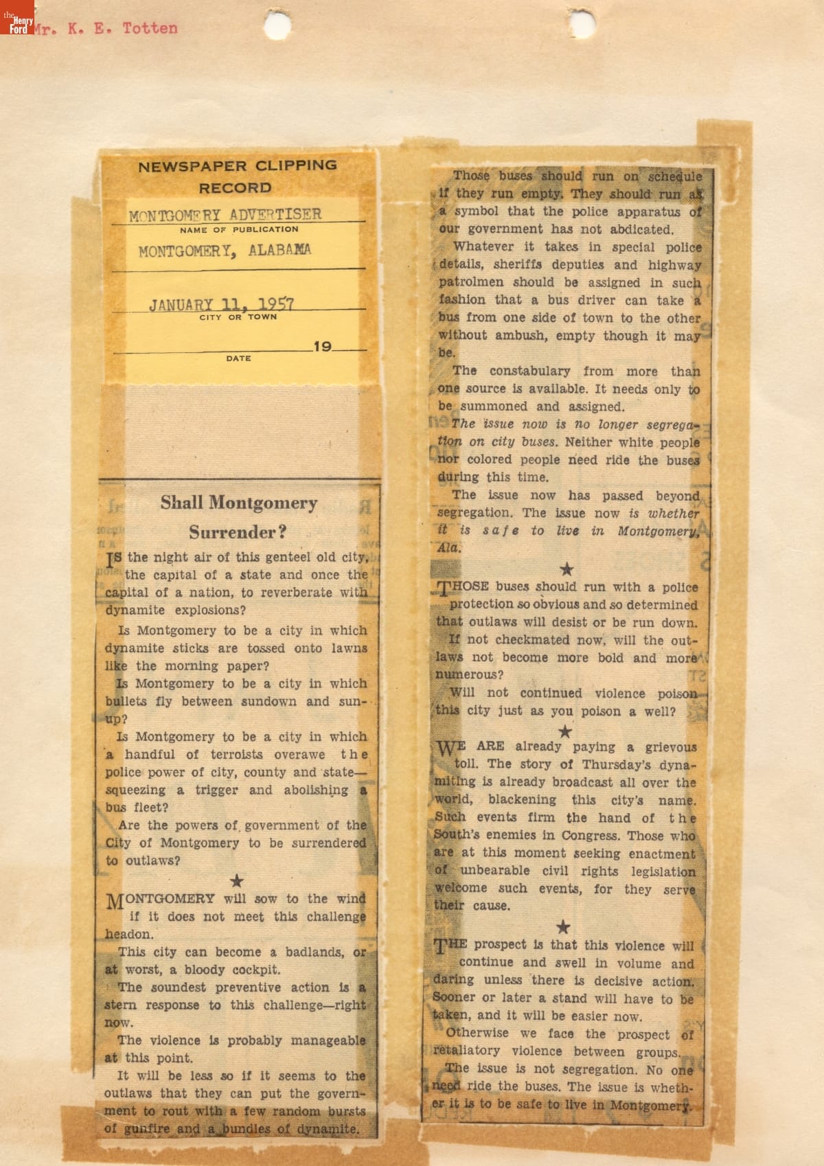 THF147533 / Montgomery Bus Boycott Scrapbook, November 1955 - April 1957 (Part 6 of 6) / January 12, 1957