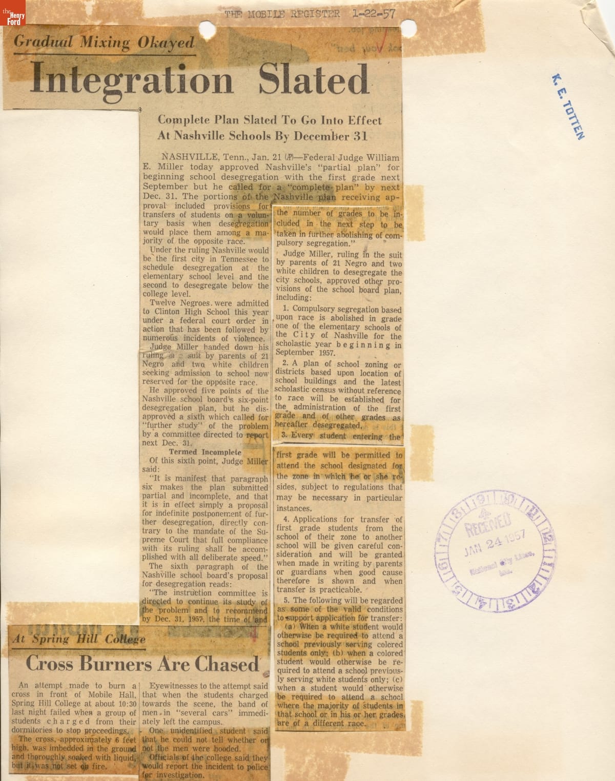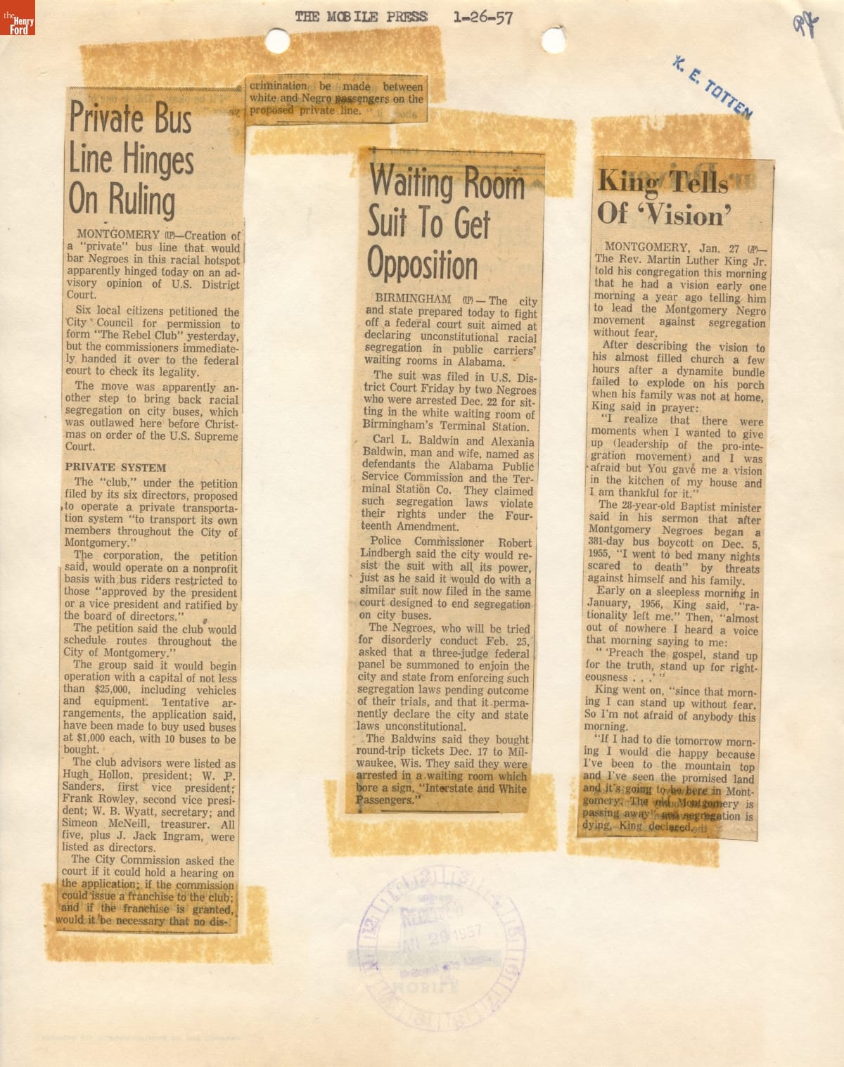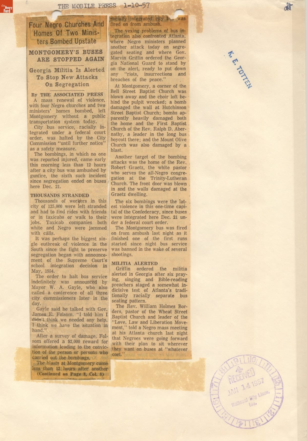 THF147524 / Montgomery Bus Boycott Scrapbook, November 1955 - April 1957 (Part 6 of 6) / January 10, 1957