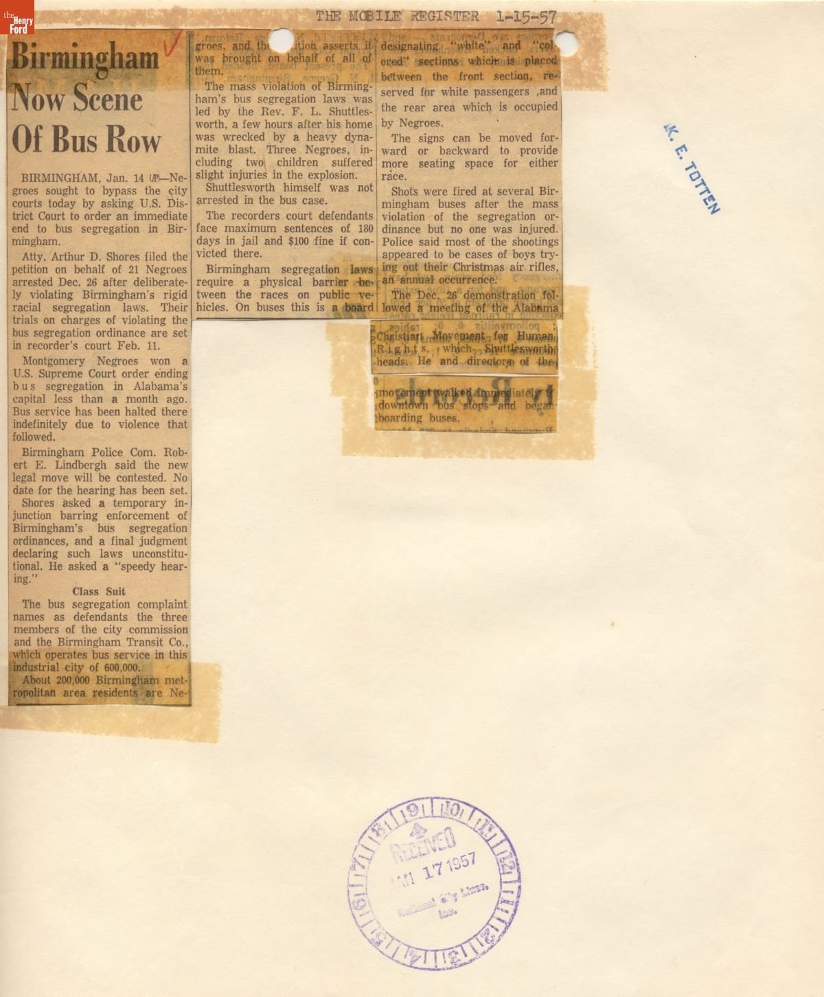 THF147536 / Montgomery Bus Boycott Scrapbook, November 1955 - April 1957 (Part 6 of 6) / January 17, 1957