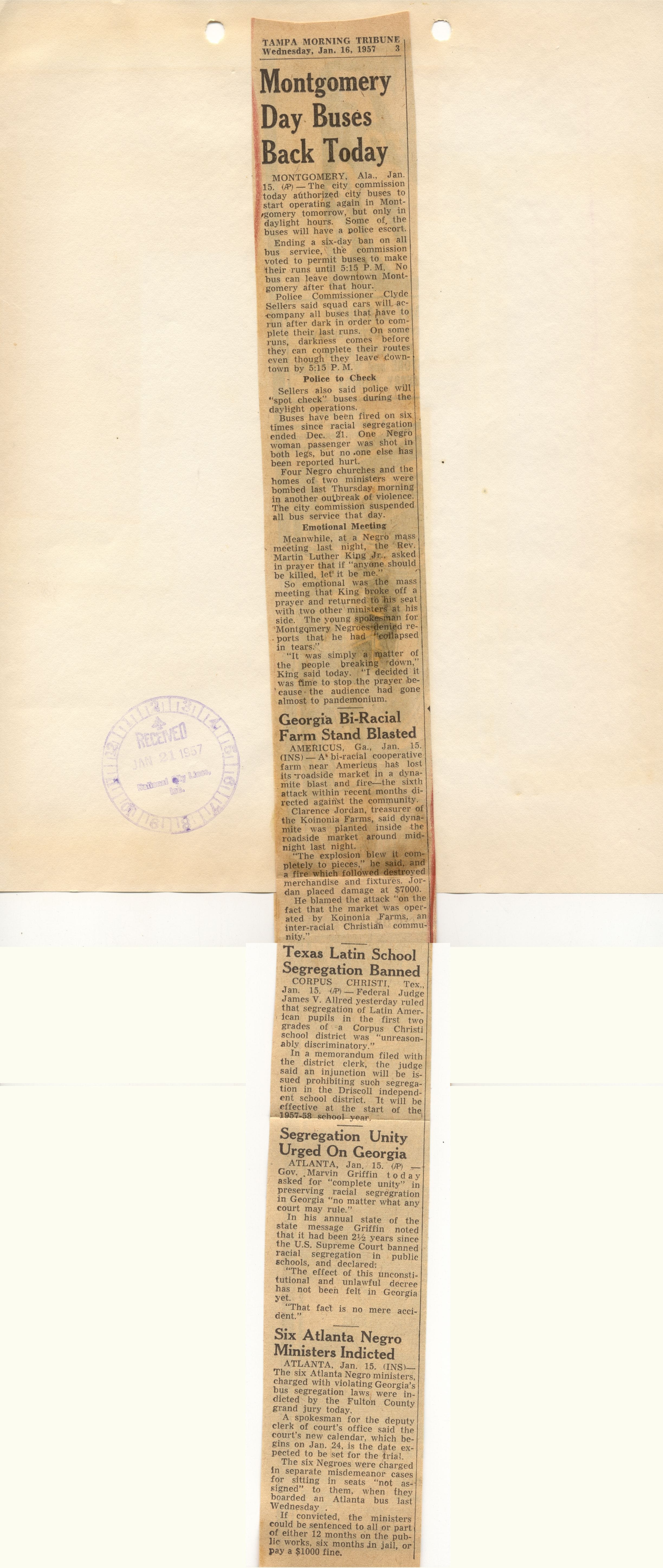 THF147535 / Montgomery Bus Boycott Scrapbook, November 1955 - April 1957 (Part 6 of 6) / January 16, 1957