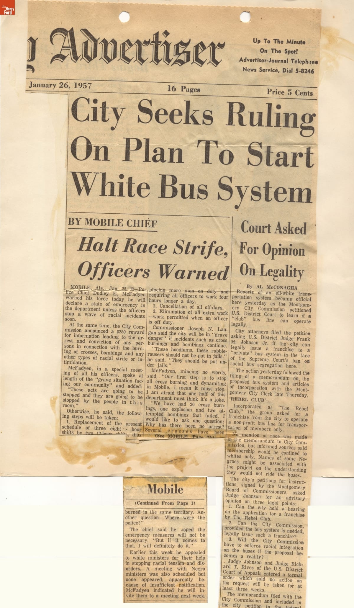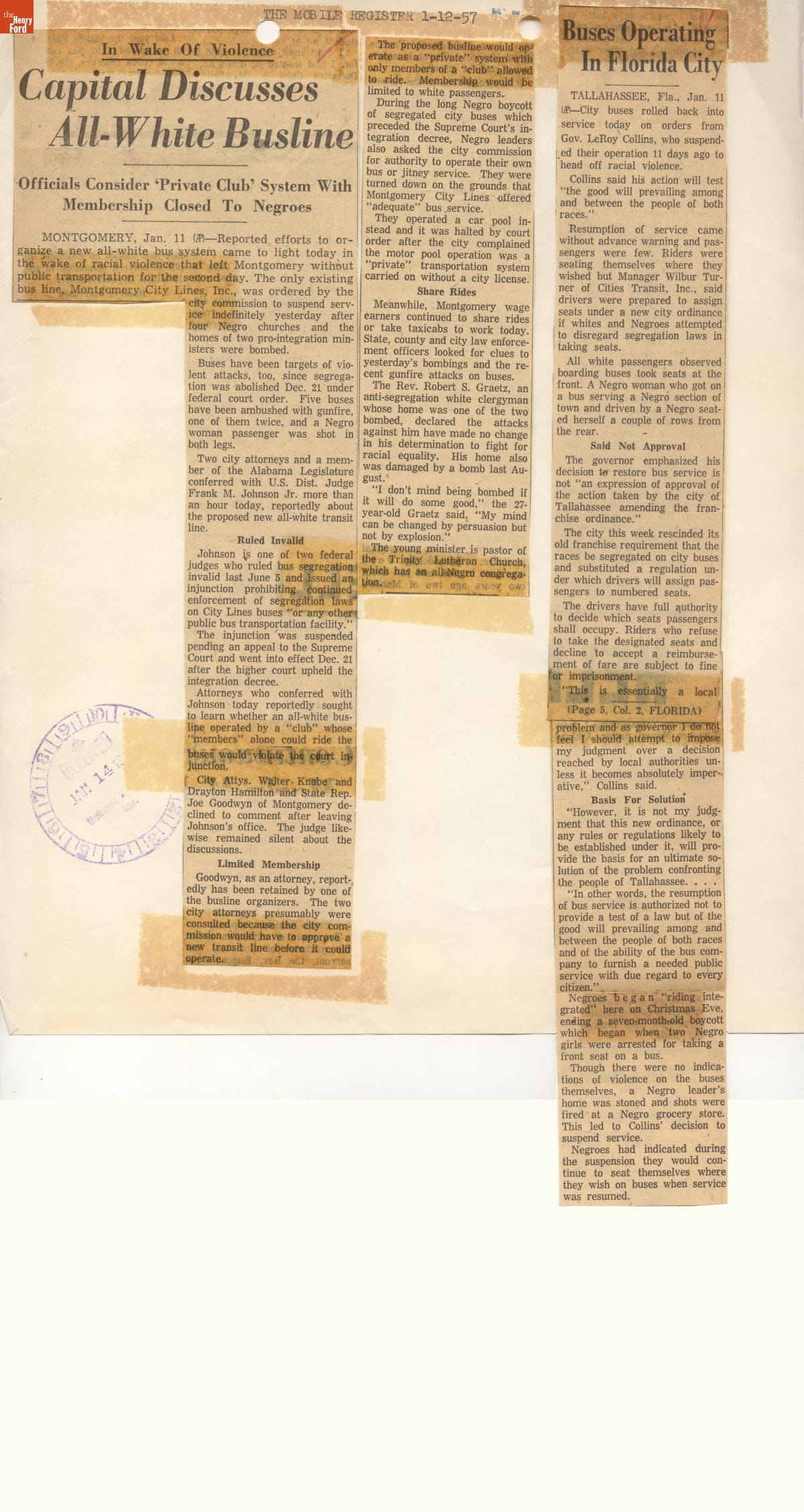 THF147531 / Montgomery Bus Boycott Scrapbook, November 1955 - April 1957 (Part 6 of 6) / January 11, 1957