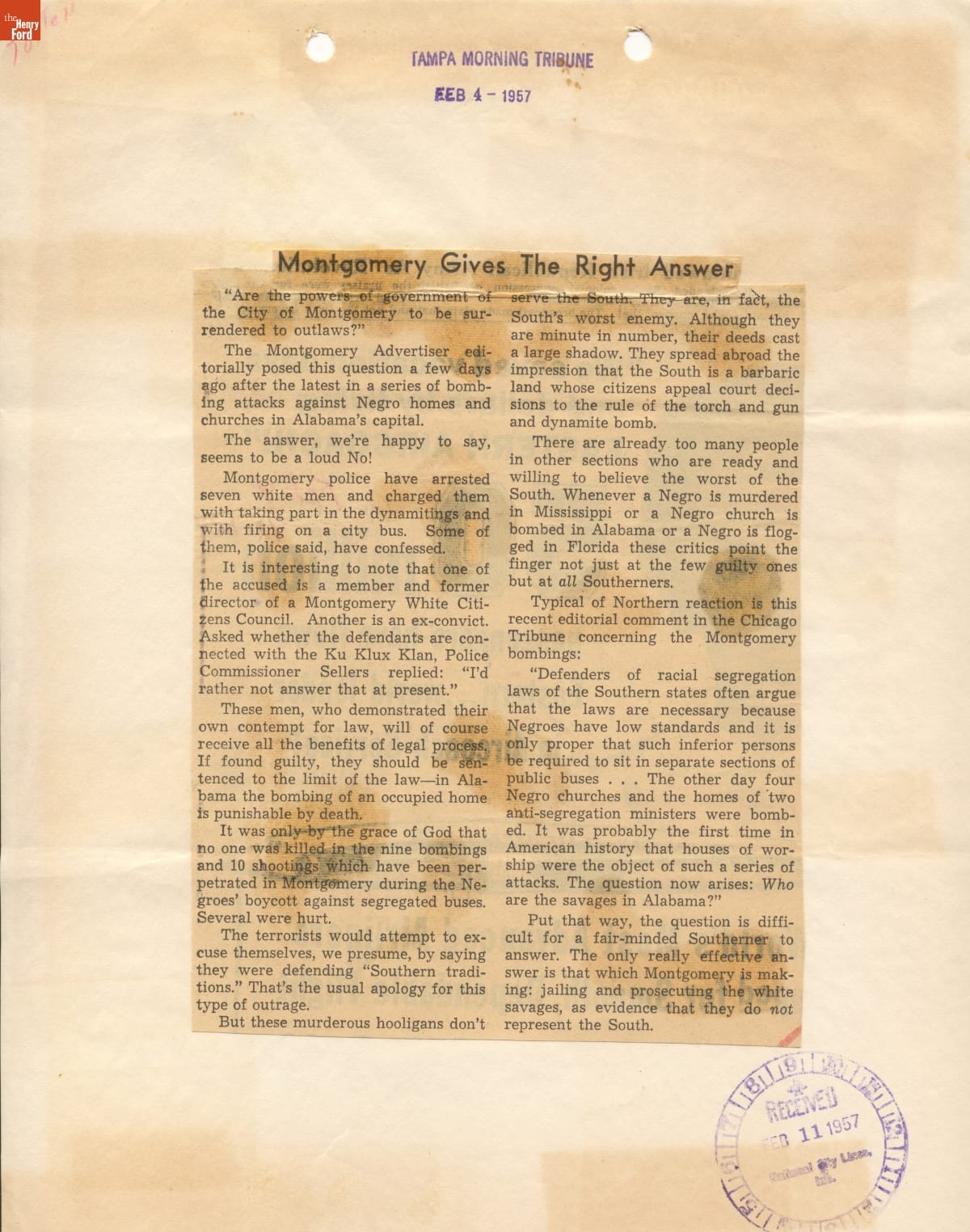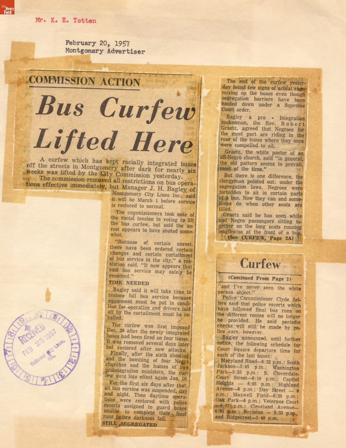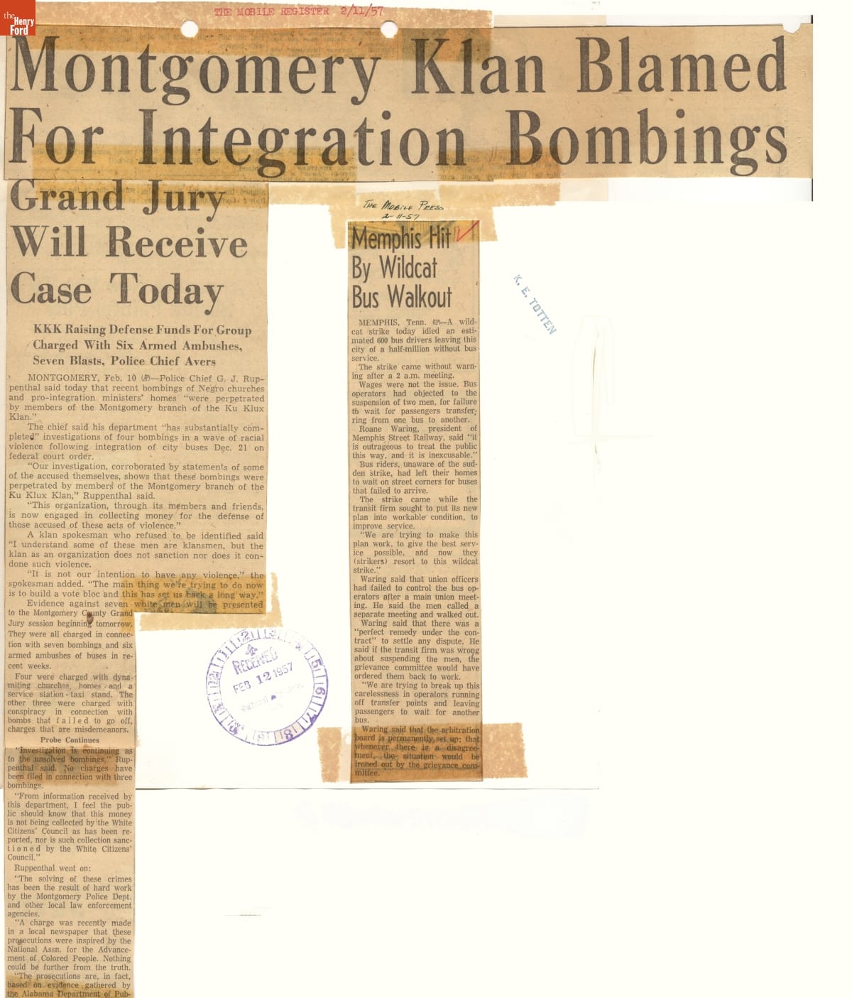 THF147549 / Montgomery Bus Boycott Scrapbook, November 1955 - April 1957 (Part 6 of 6) / February 11, 1957