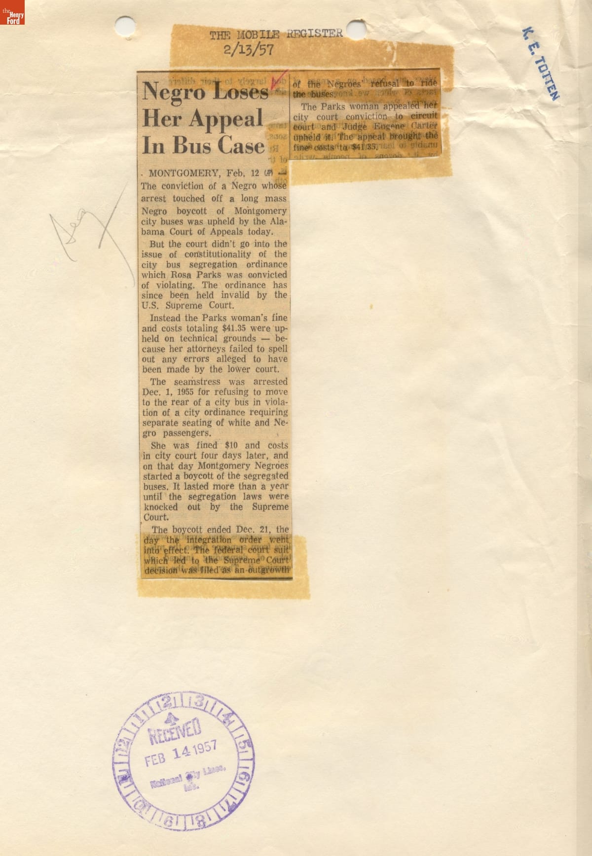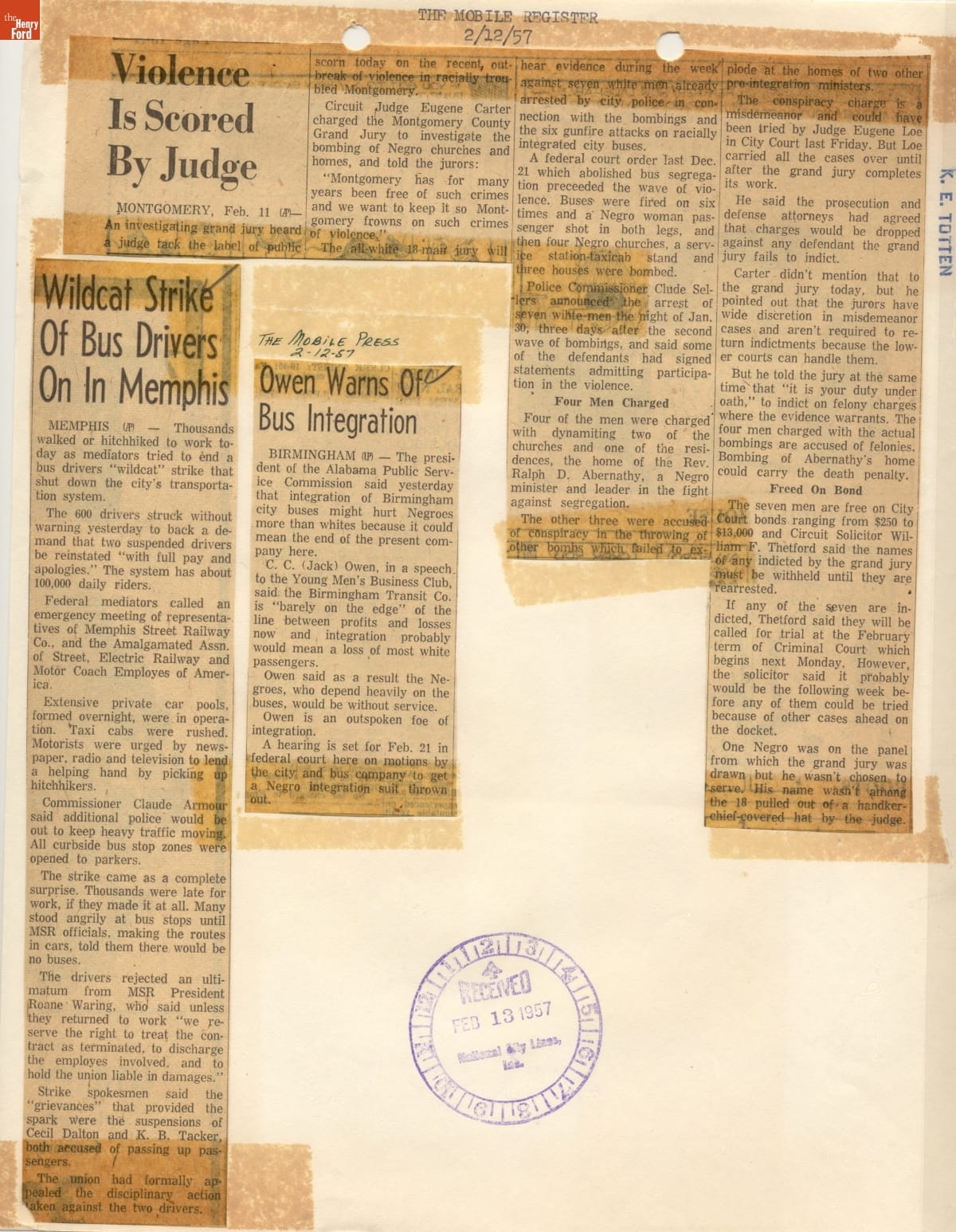 THF147552 / Montgomery Bus Boycott Scrapbook, November 1955 - April 1957 (Part 6 of 6) / February 13, 1957
