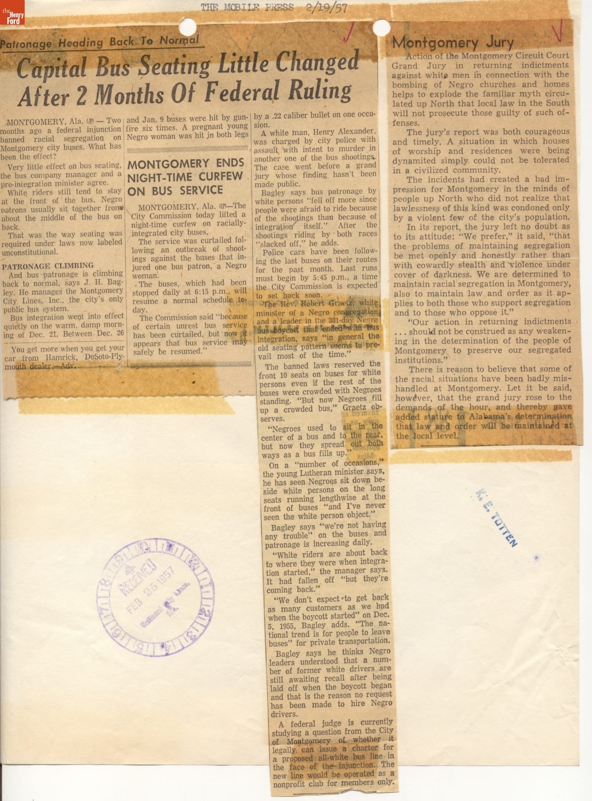 THF147547 / Montgomery Bus Boycott Scrapbook, November 1955 - April 1957 (Part 6 of 6) / January 29, 1957