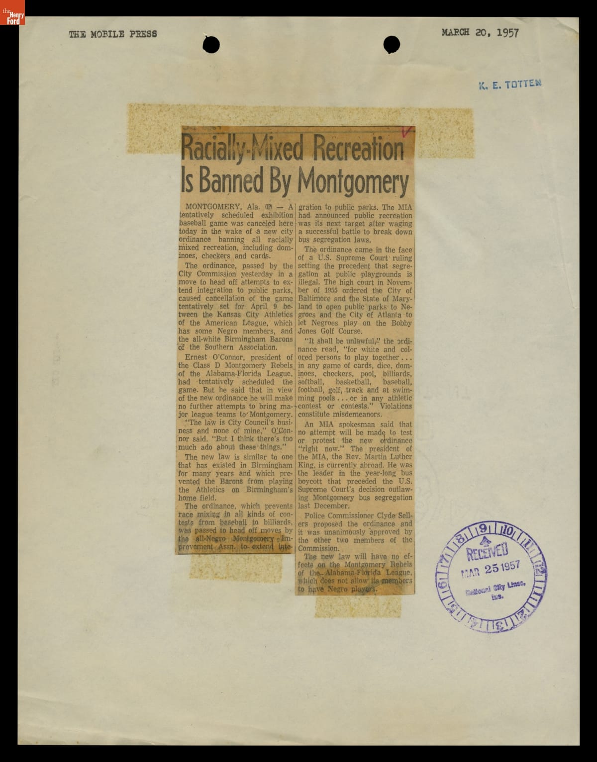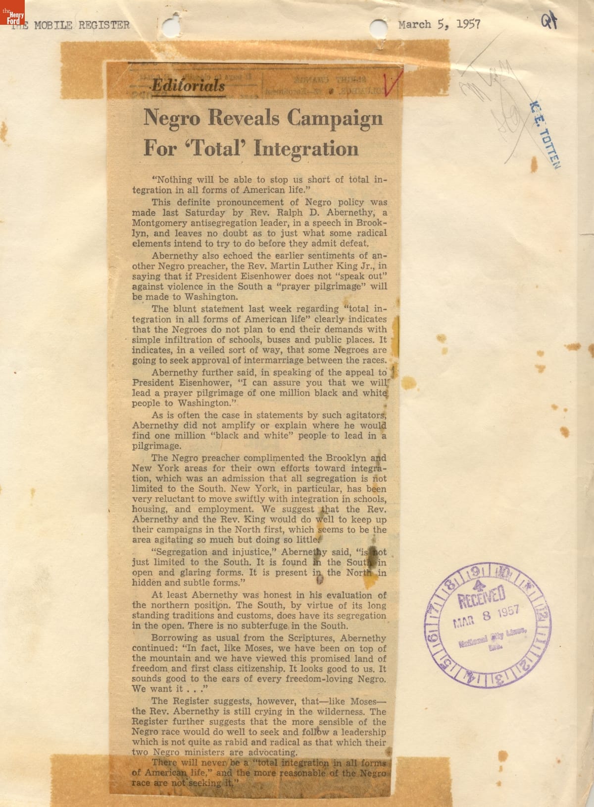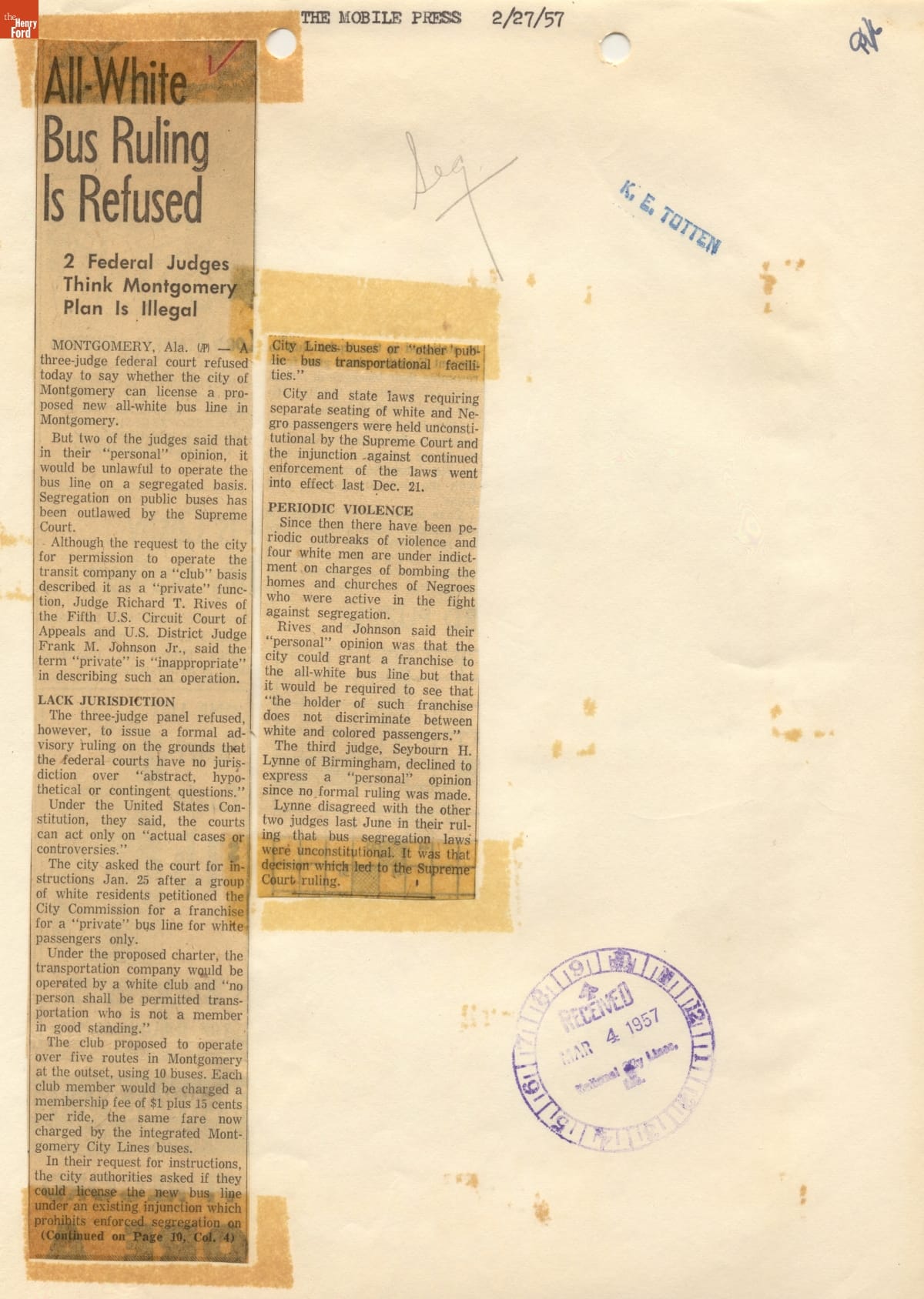 THF147563 / Montgomery Bus Boycott Scrapbook, November 1955 - April 1957 (Part 6 of 6) / March 20, 1957