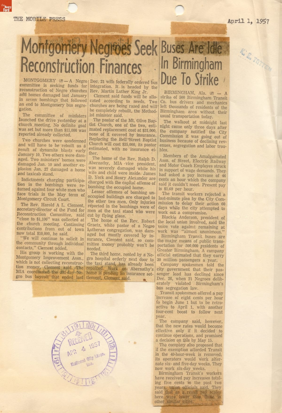 THF147564 / Montgomery Bus Boycott Scrapbook, November 1955 - April 1957 (Part 6 of 6) / April 1, 1957