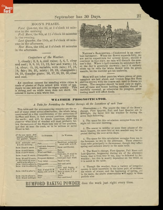 Almanacs contained practical information about the coming year. Readers normally found a calendar, weather predictions, tide schedules, and information related to astronomical events, agriculture, health, politics and other matters. Interspersed were jokes and witty sayings. John Gruber began publishing the Hagerstown Town and Country Almanack in 1797. It is the second oldest almanac still published in the United States.